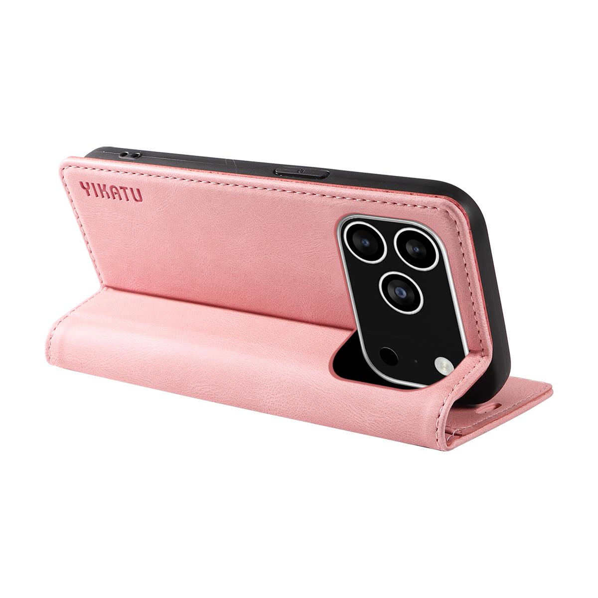 For iPhone 17 Pro Leather Cover YIKATU YK-004 Skin-Touch Wallet Phone Cases – Pink