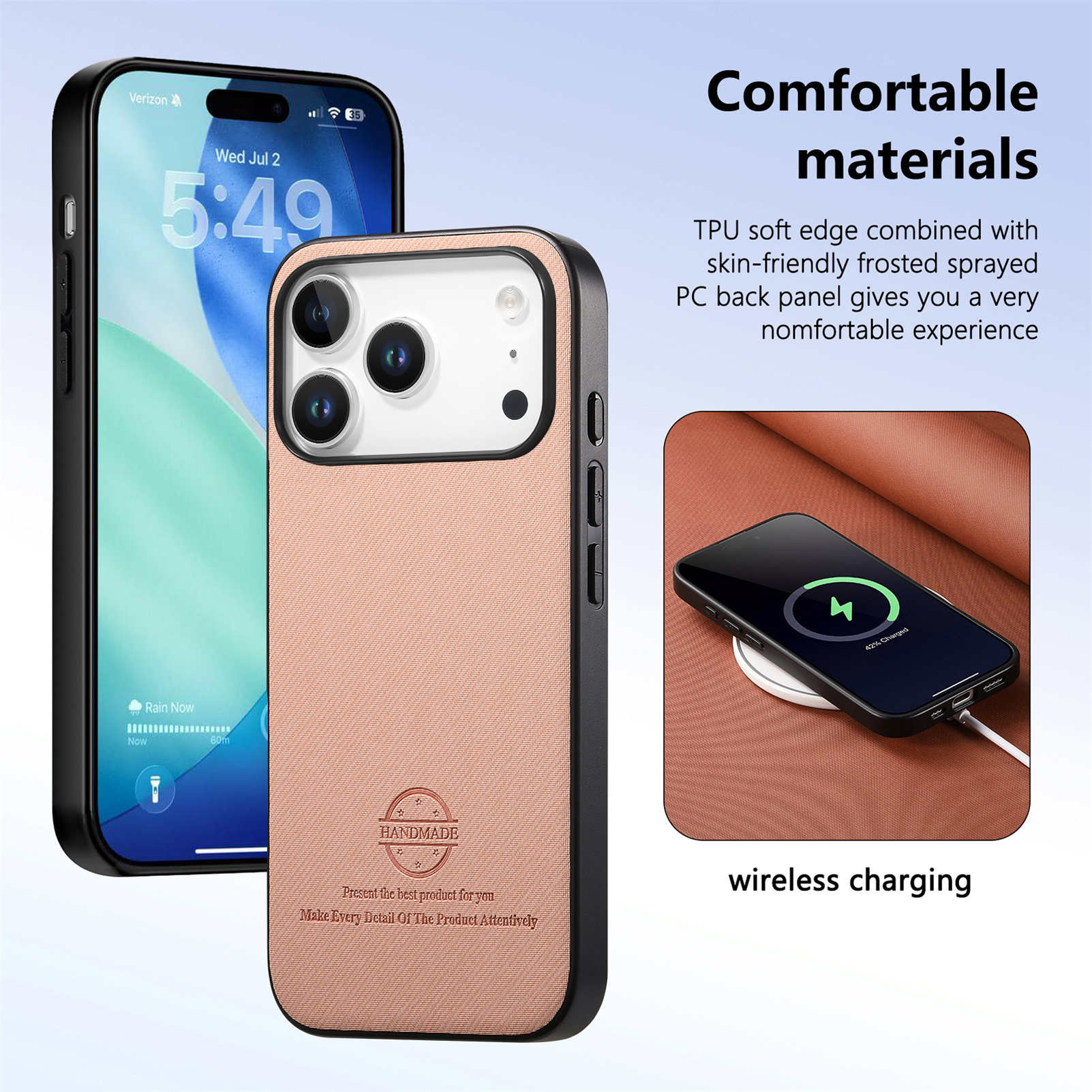 - Advanced Material Composition Crafted from a hybrid of soft TPU edges, frosted PC back panel, and PU leather, these materials provide flexibility, durability, and a premium feel, ensuring your phone stays secure in a stylish and comfortable case