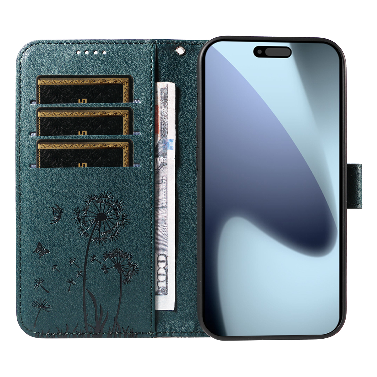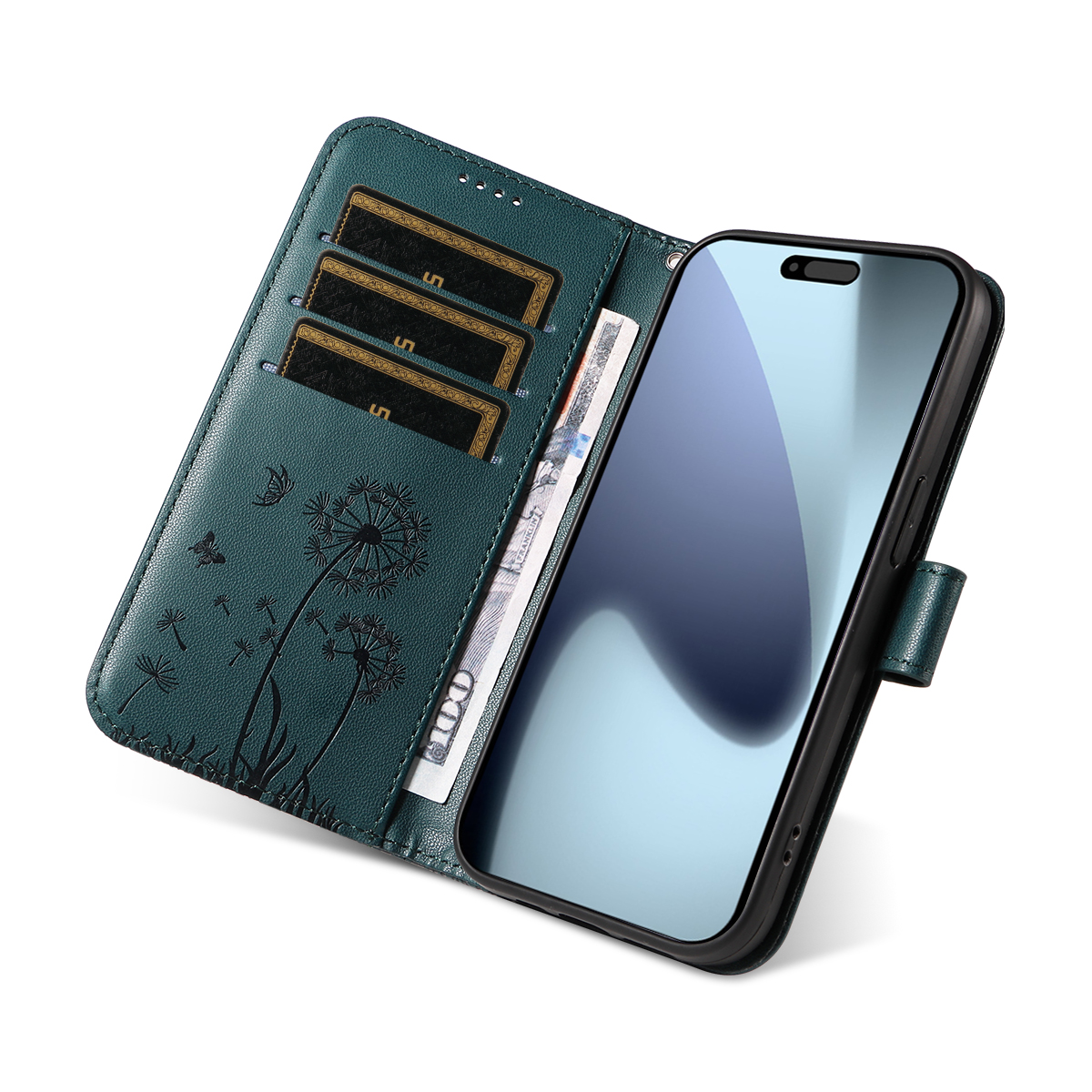 - Elegant Pattern Imprinted Features a stunning Dandelion pattern imprinted design on the surface of the leather cover and card slot area, adding a touch of luxury and uniqueness