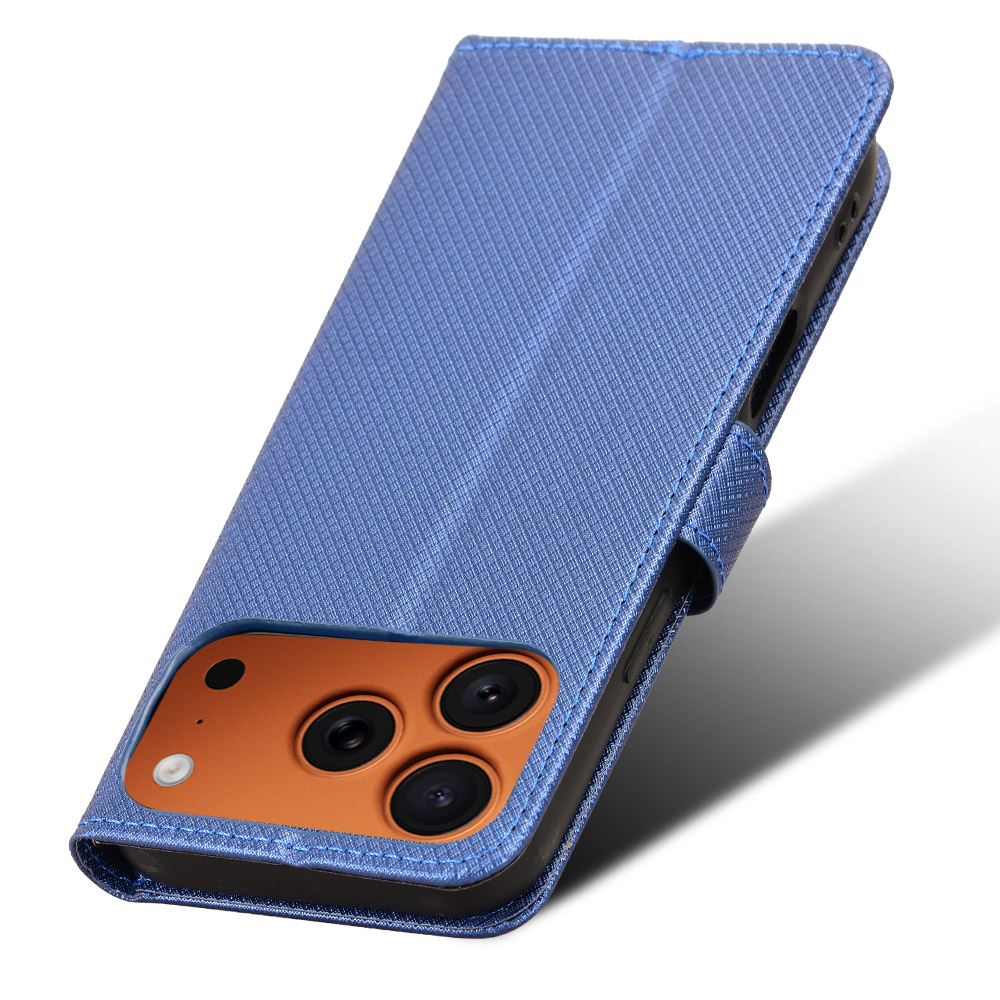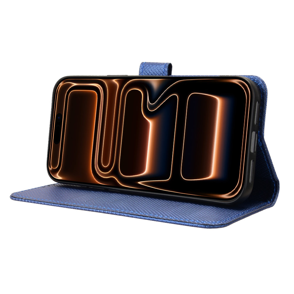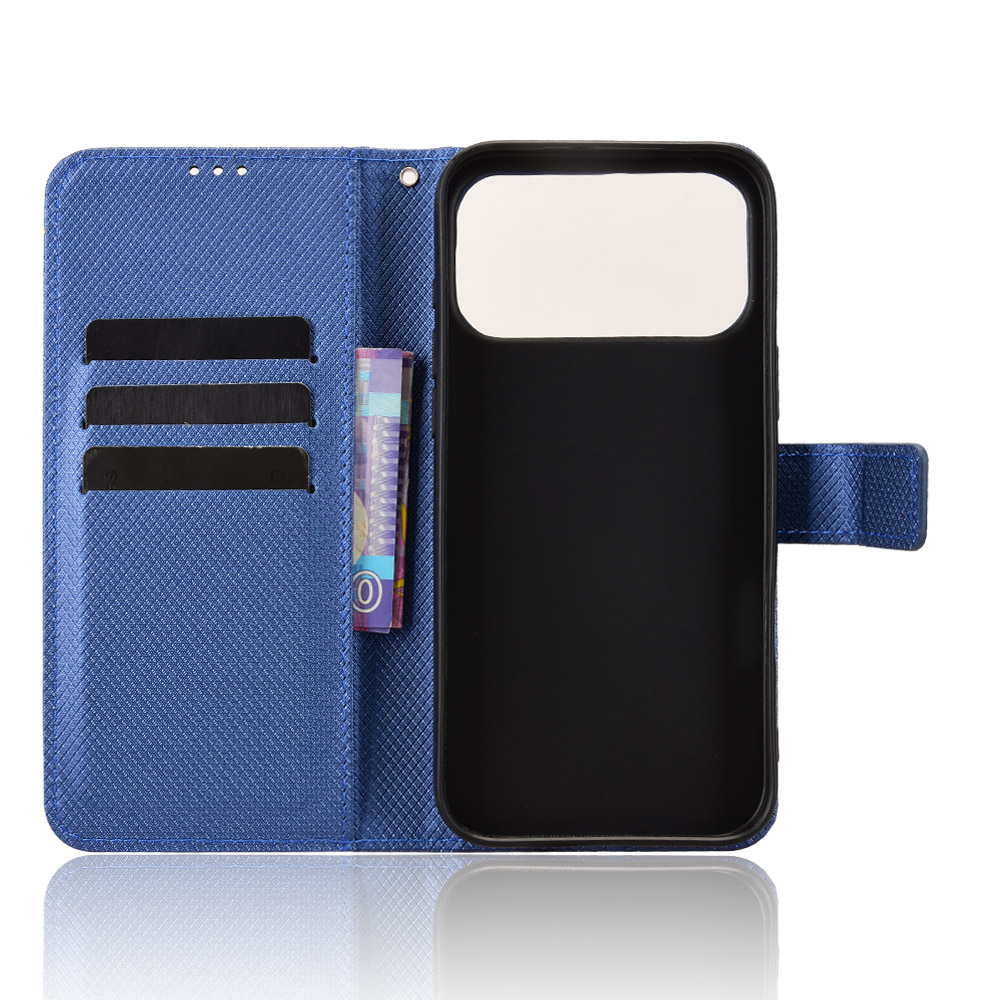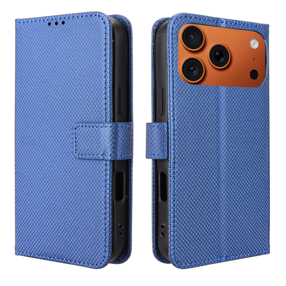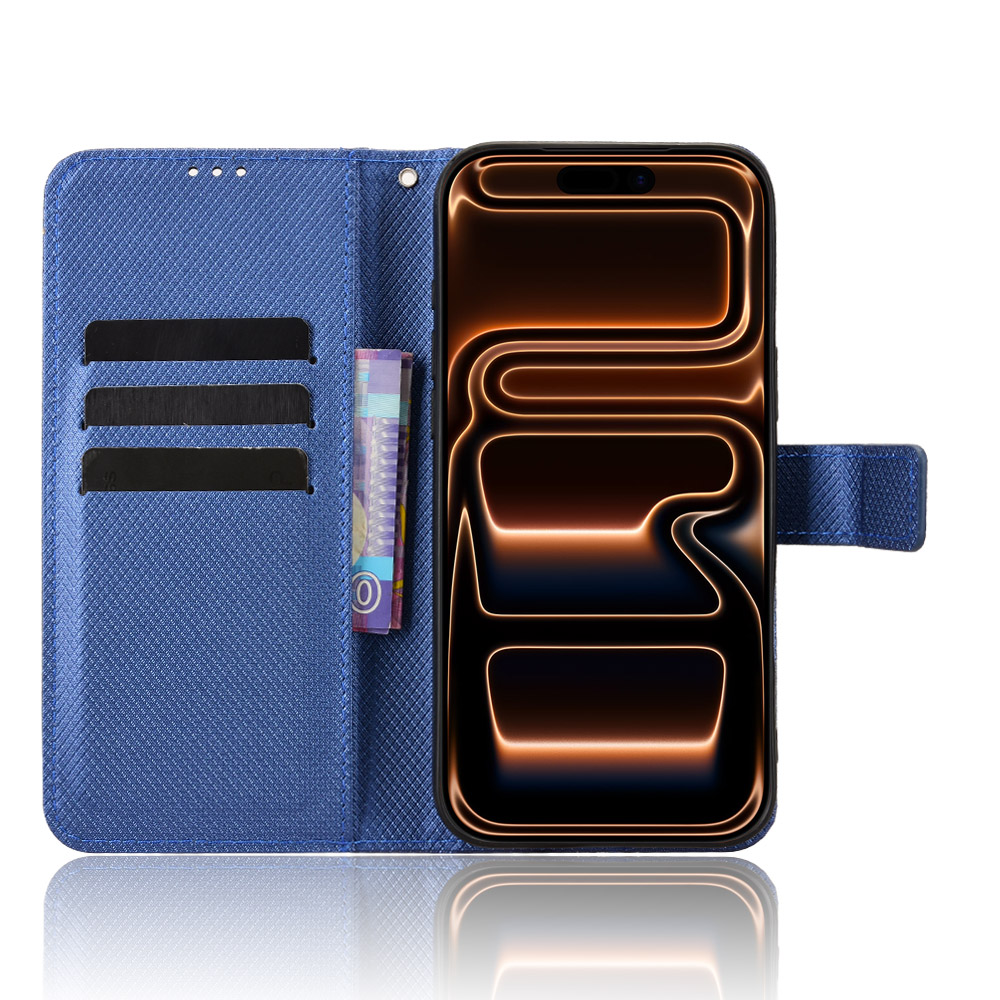 For iPhone 17 Pro Leather Wallet Case with Strap Diamond Texture Phone Cover – Blue