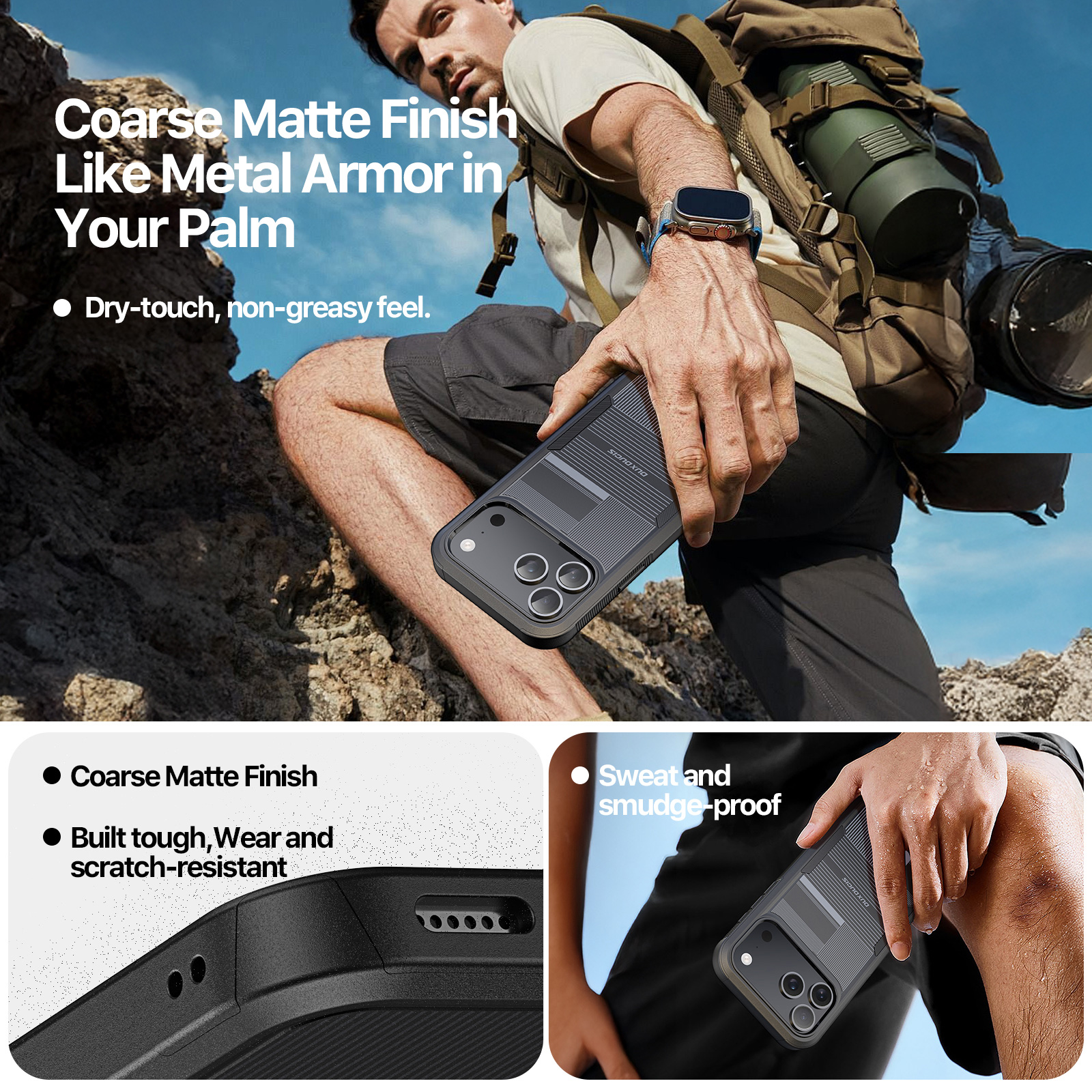 - Coarse Matte Texture Grip Rugged anti-slip matte finish resists fingerprints and sweat for a dry, armored hand feel that’s wear and scratch resistant