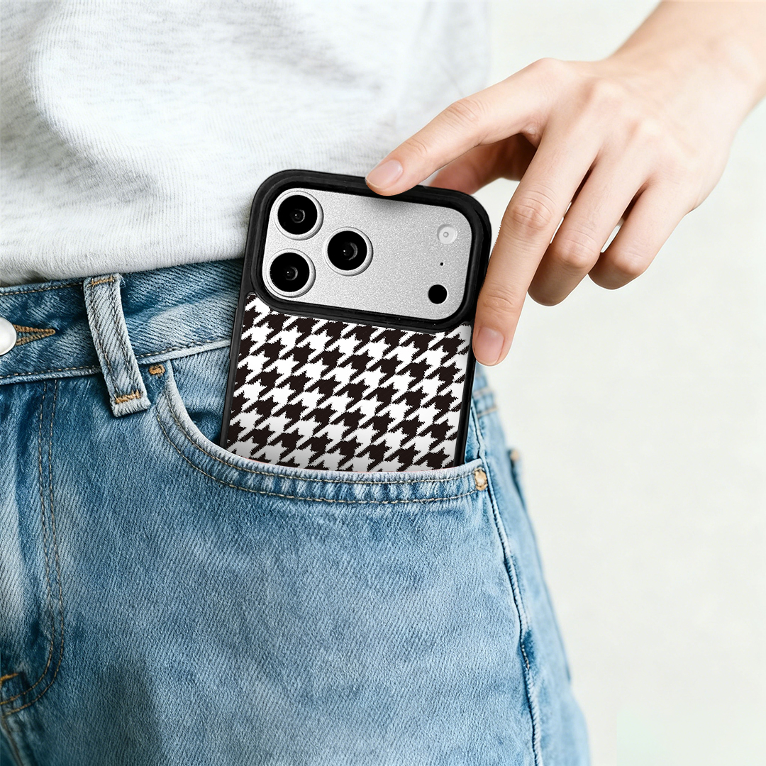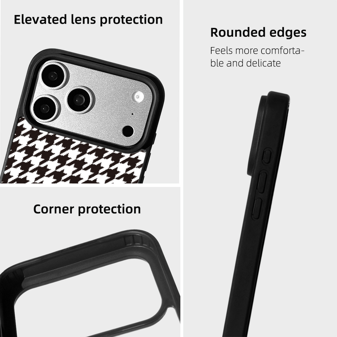 For iPhone 17 Pro Magnetic Case EYCASE Grid Series Black Edge TPU + Acrylic Cover – Black White Houndstooth