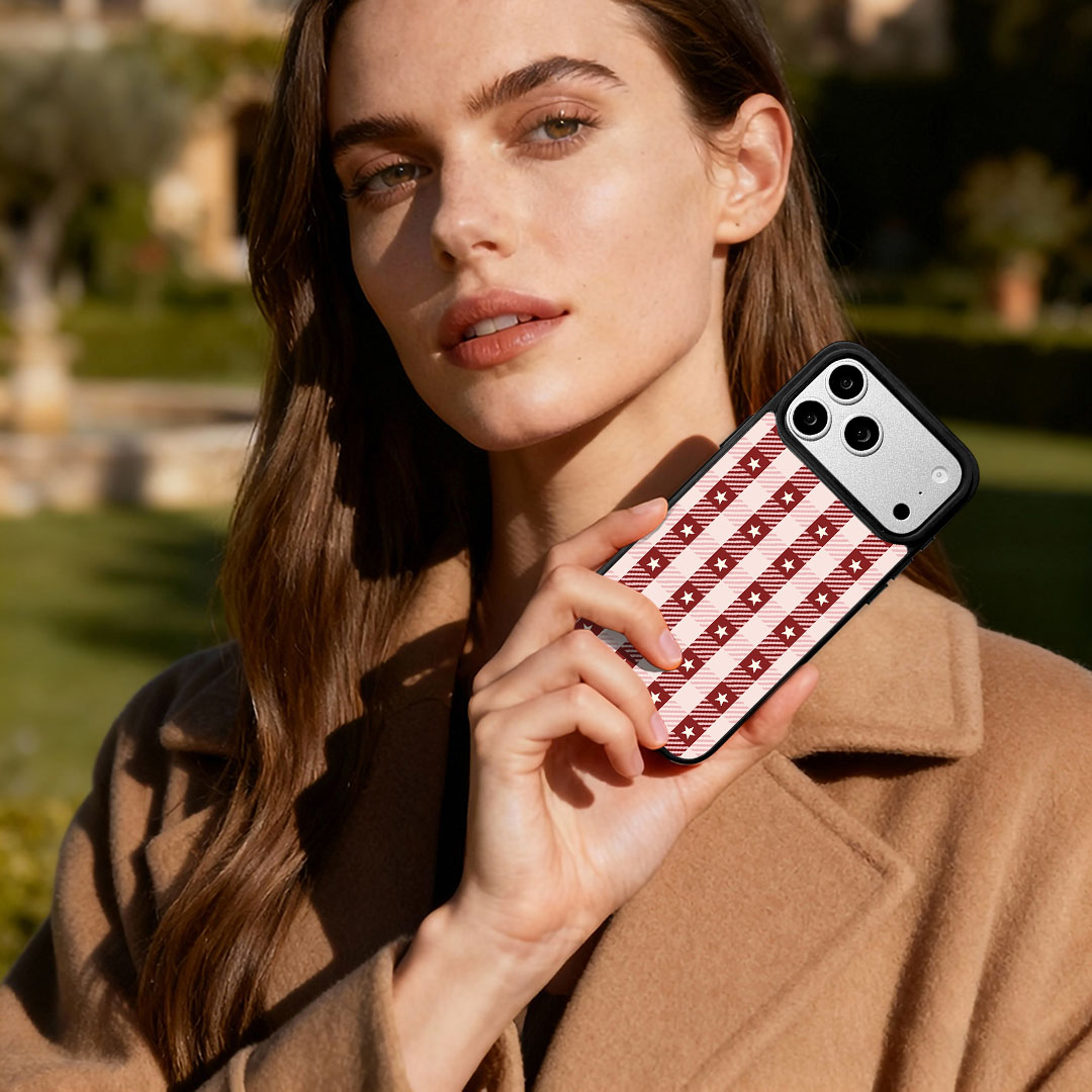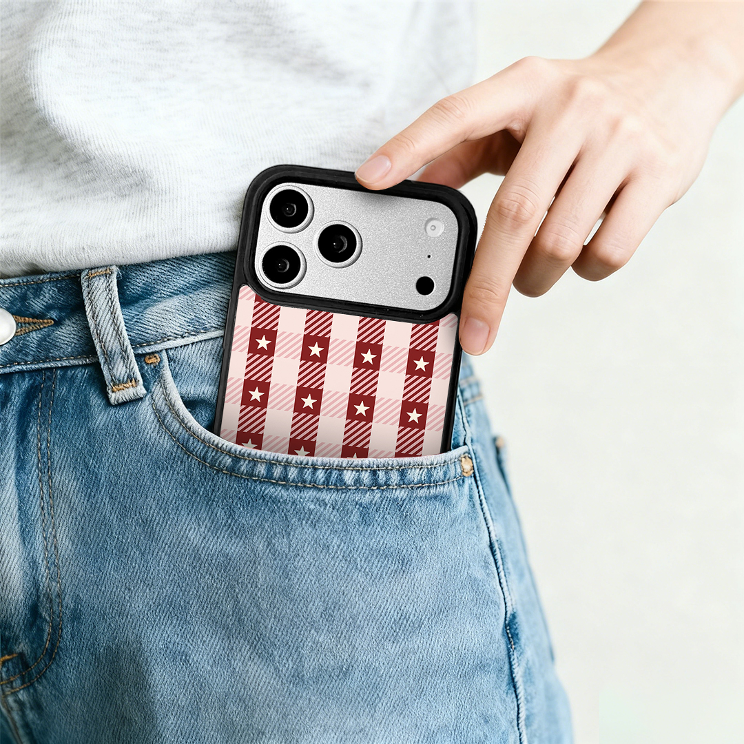 - Stylis Pattern Design The back panel features a unique grid pattern artwork with black edges, creating a chic look.