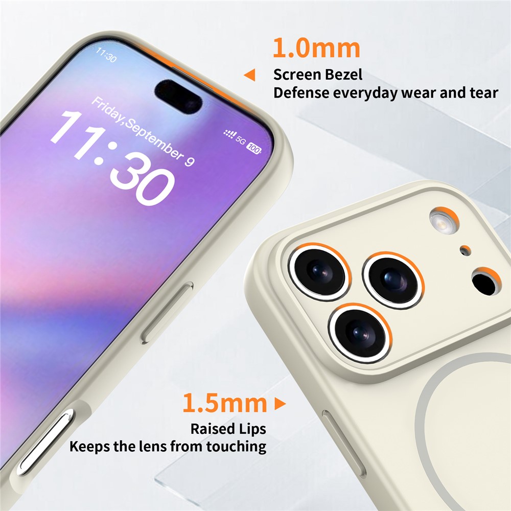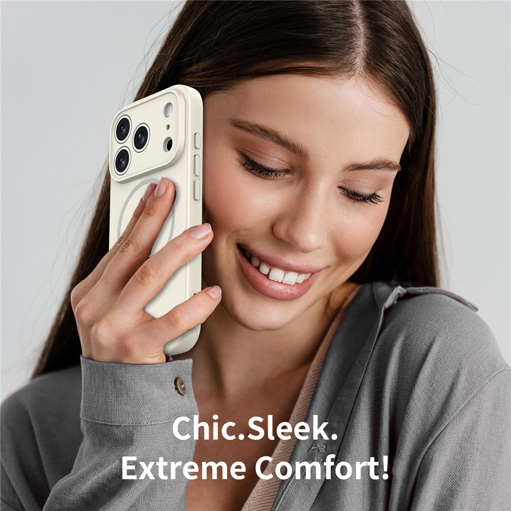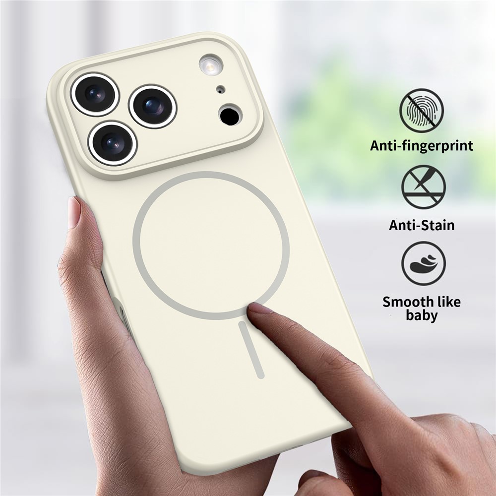 For iPhone 17 Pro Magnetic Case PC + TPU Phone Cover with Tempered Glass Screen Film – Antique White