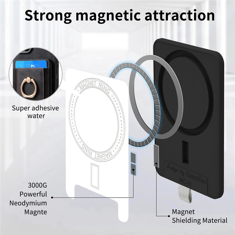 - Magnetic Detachable Card Holder The phone case features a detachable card holder that attaches securely with a powerful 3000G neodymium magnet, providing easy access to your essential cards without the risk of falling off