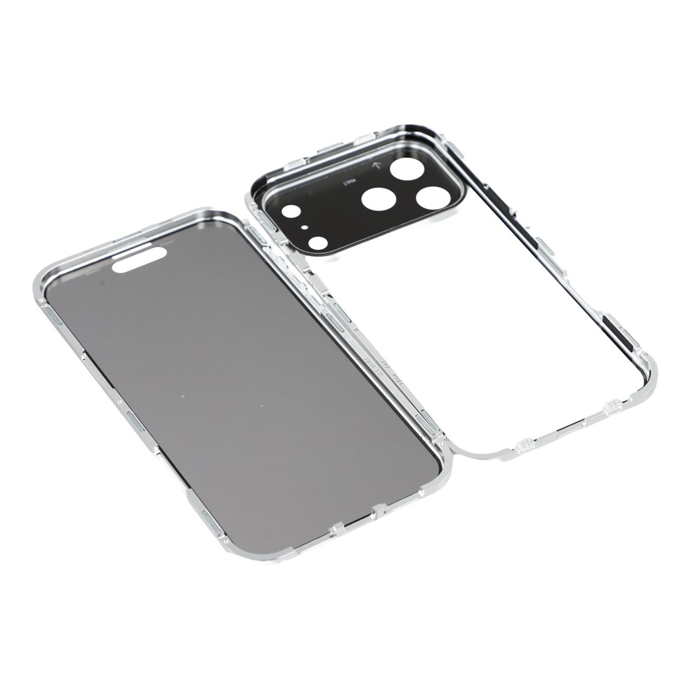 For iPhone 17 Pro Max Case Anti-Spy Double-Sided Tempered Glass + Magnetic Metal Frame Phone Cover - Silver