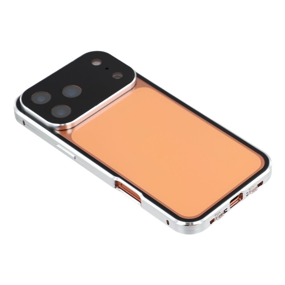 • For iPhone 17 Pro Max Case Anti-Spy Double-Sided Tempered Glass + Magnetic Metal Frame Phone Cover - Orange