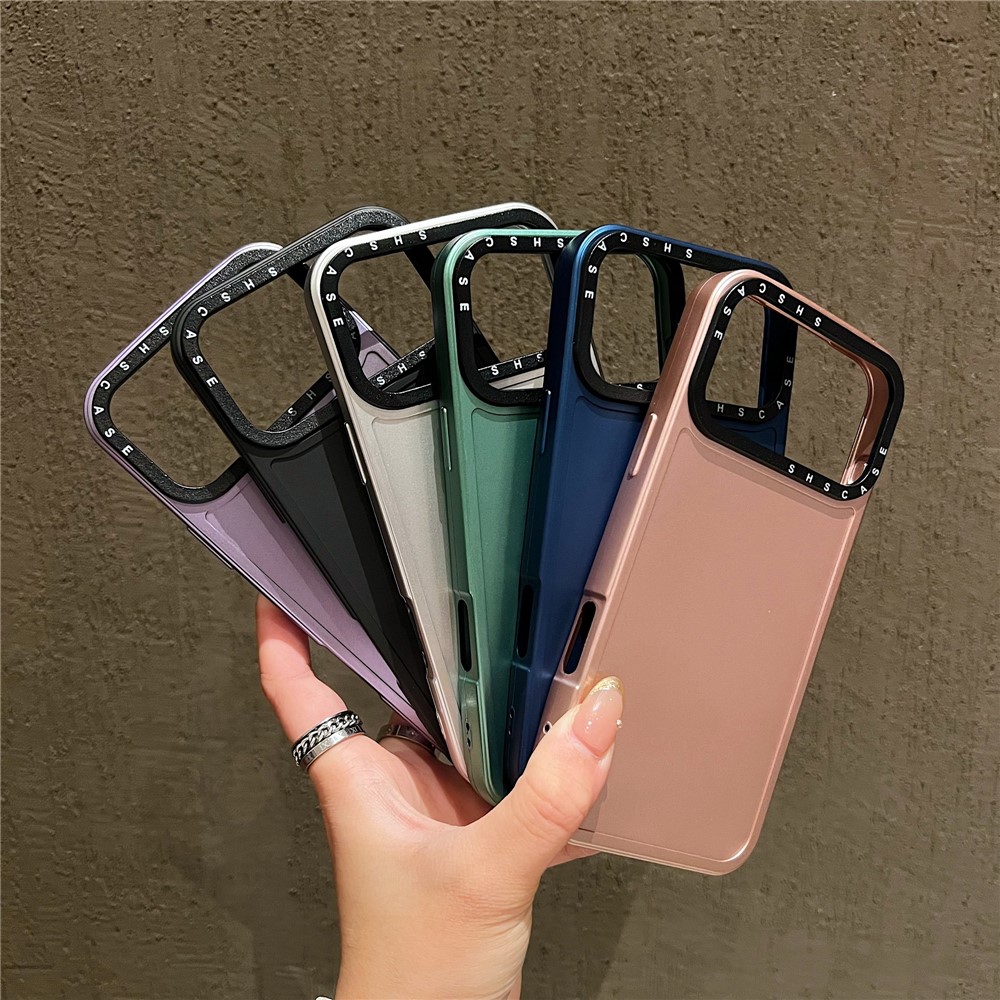 • For iPhone 17 Pro Max Case Black Lens Frame Metal Paint Finish PC + TPU Phone Back Cover - Black