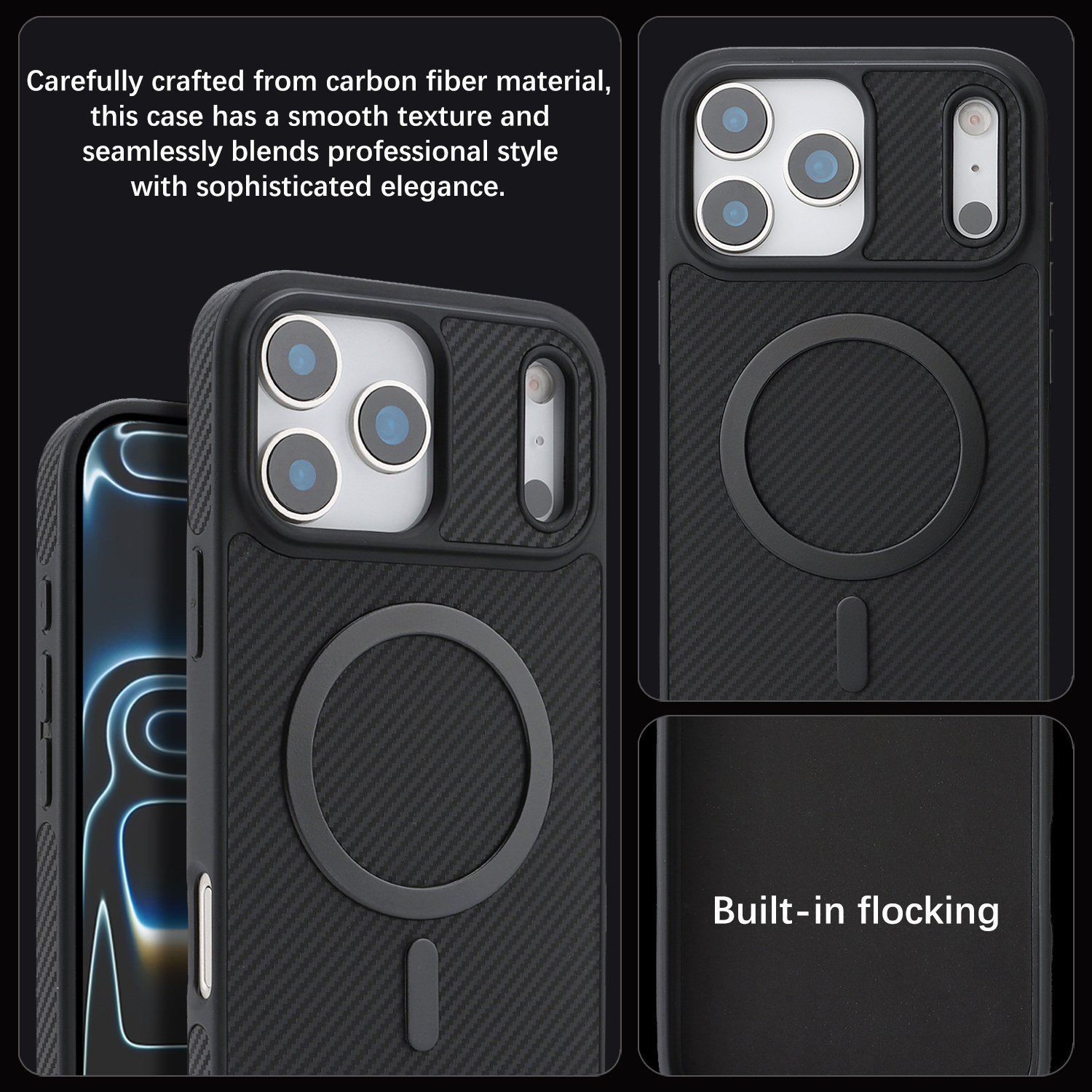 For iPhone 17 Pro Max Case Carbon Fiber Texture PU Leather Coated TPU Cover Compatible with MagSafe – Black
