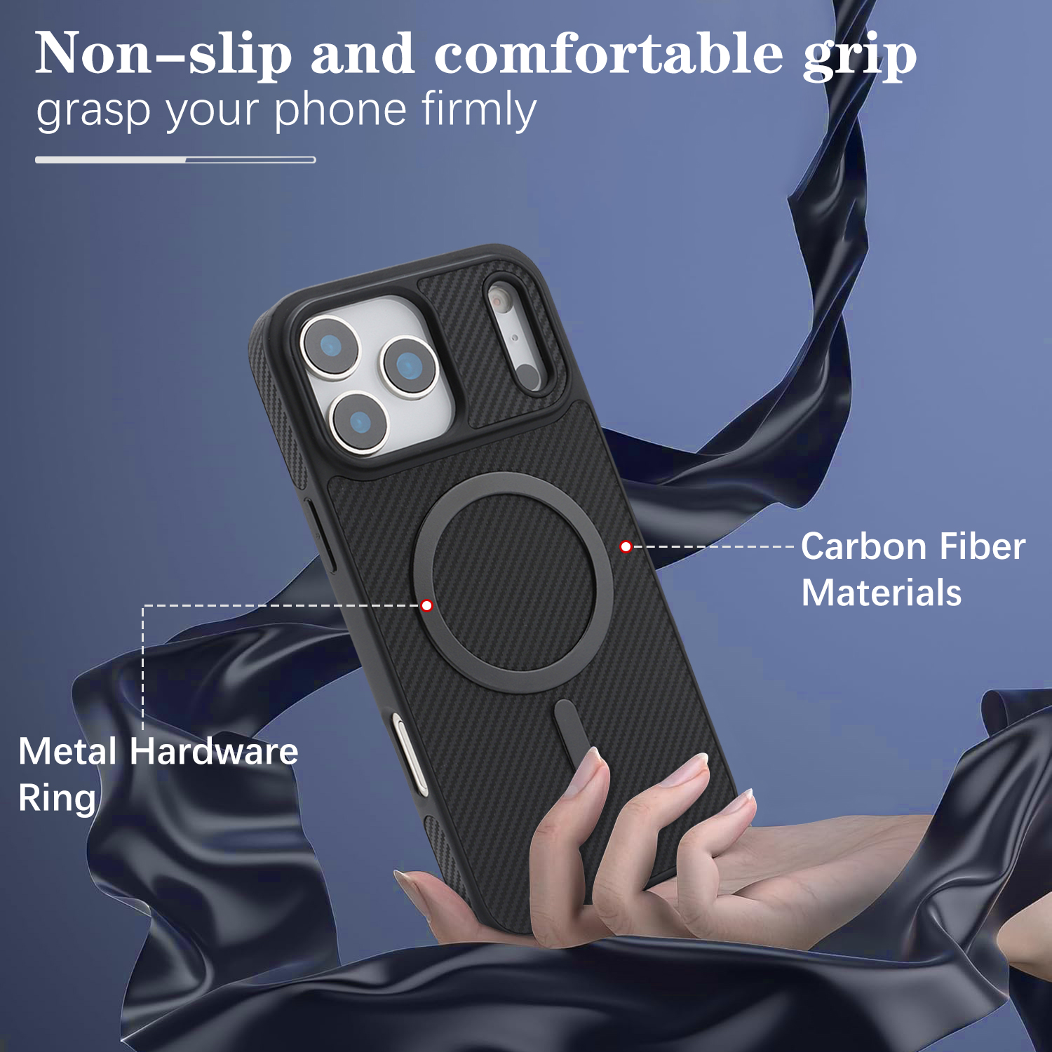 For iPhone 17 Pro Max Case Carbon Fiber Texture PU Leather Coated TPU Cover Compatible with MagSafe - Black