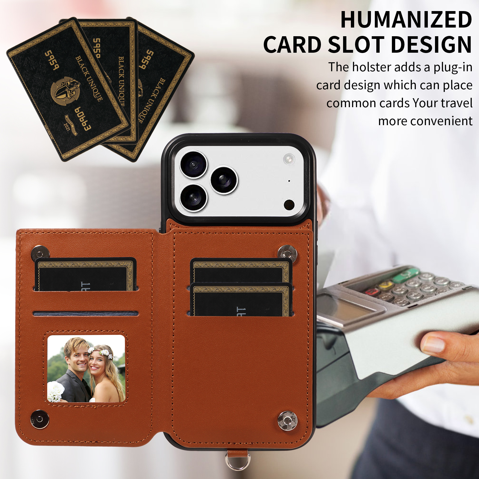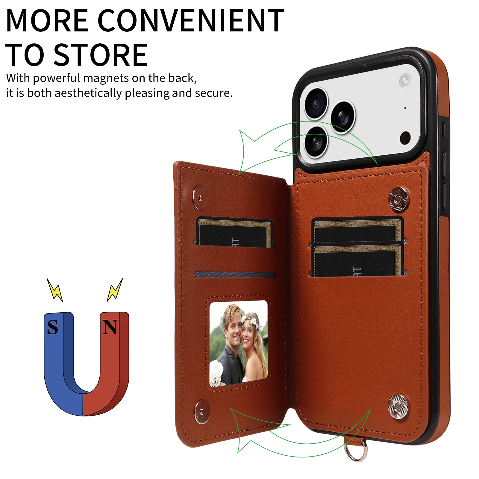 - Secure Magnetic Closure & Sturdy Ring Buckle Equipped with magnetic buttons for reliable closure and a robust ring buckle, the case ensures your phone and cards stay safe while providing a firmer, more comfortable grip.