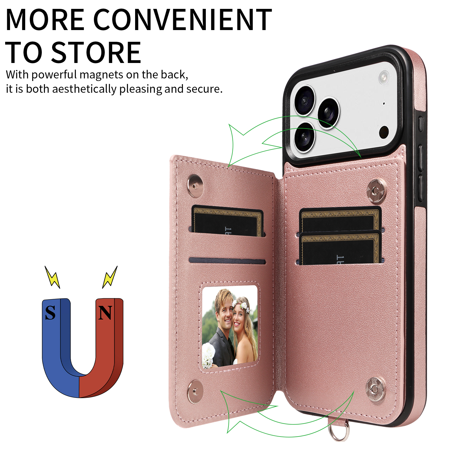 - Secure Magnetic Closure & Sturdy Ring Buckle Equipped with magnetic buttons for reliable closure and a robust ring buckle, the case ensures your phone and cards stay safe while providing a firmer, more comfortable grip.