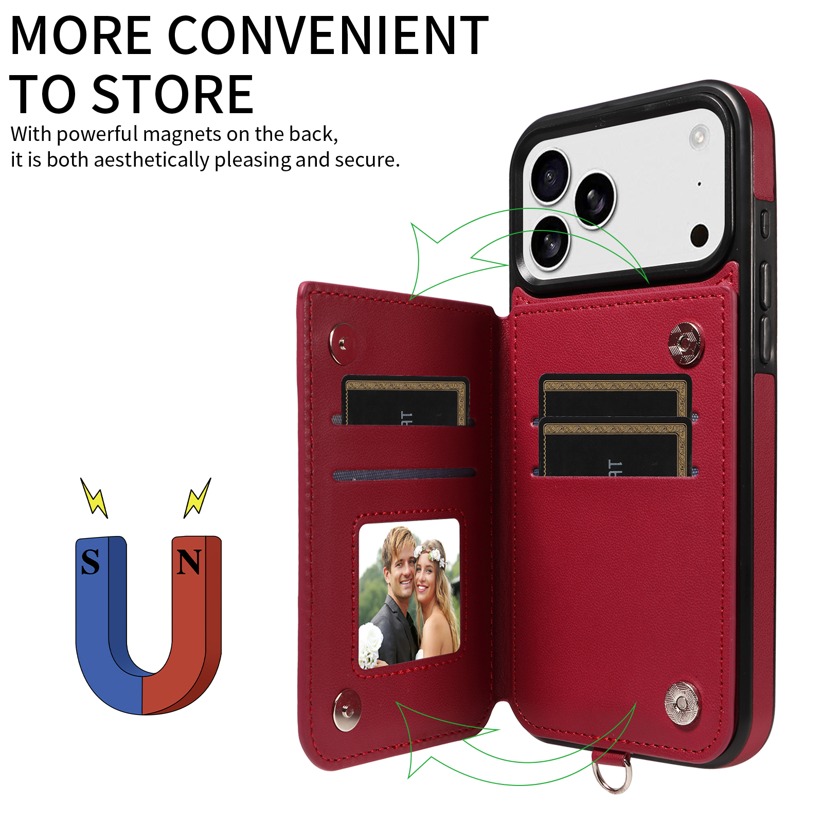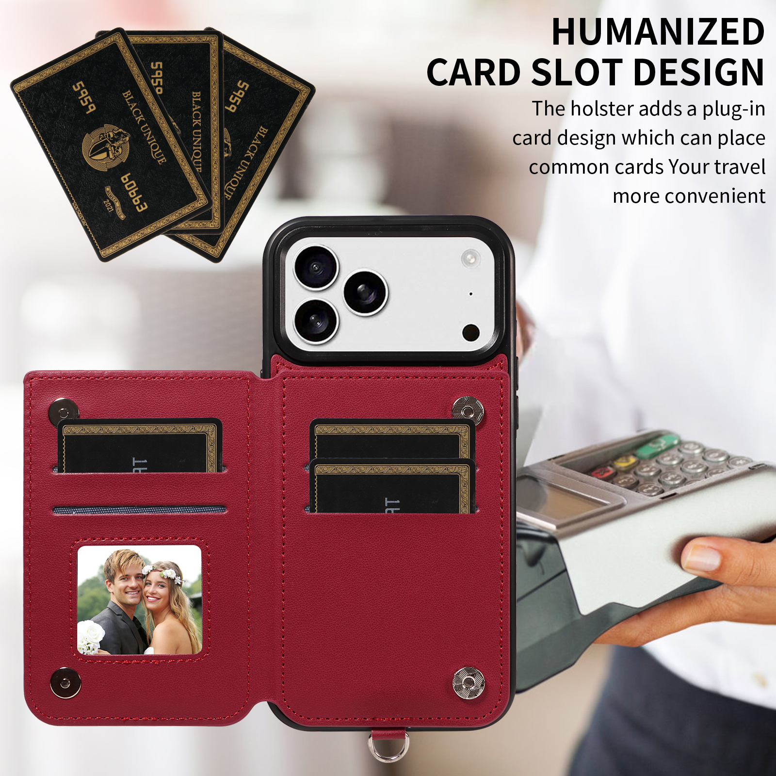 - Secure Magnetic Closure & Sturdy Ring Buckle Equipped with magnetic buttons for reliable closure and a robust ring buckle, the case ensures your phone and cards stay safe while providing a firmer, more comfortable grip.