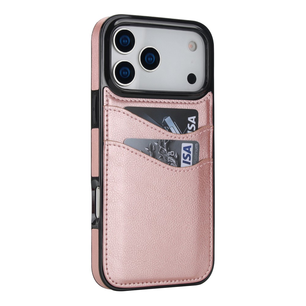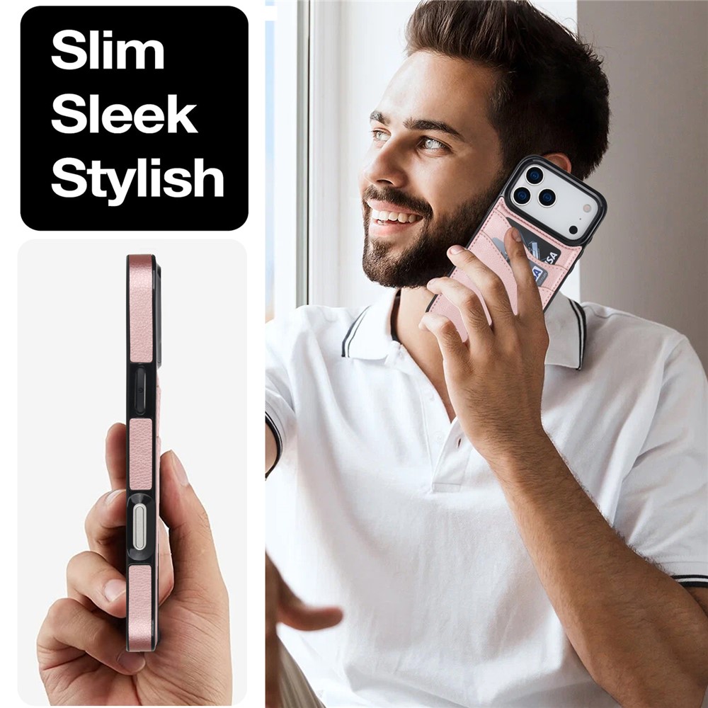 For iPhone 17 Pro Max Case Card Slot Slim-Fit PU + TPU Mobile Cover – Rose Gold