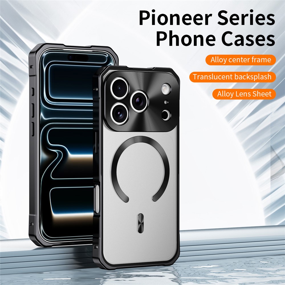 • For iPhone 17 Pro Max Case Compatible with MagSafe Hard PC Metal Frame Frosted Phone Back Cover - Orange