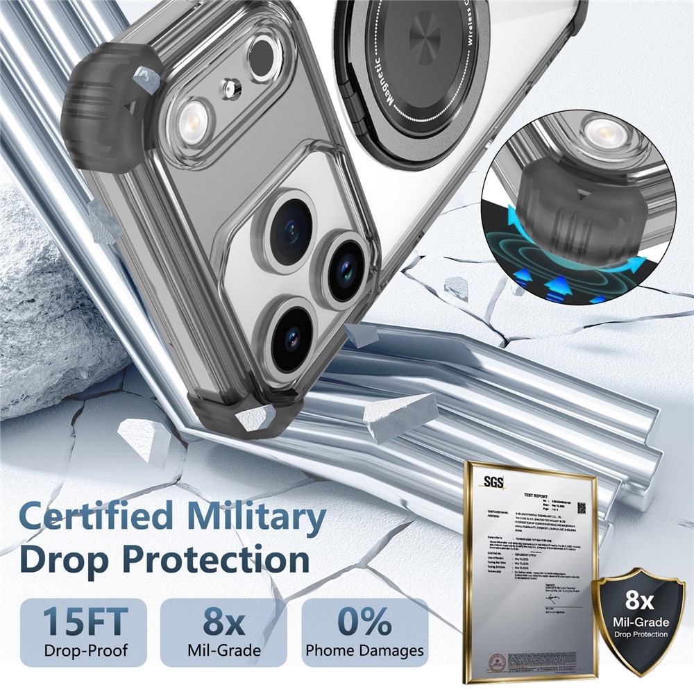- Certified Military Drop Protection This phone case offers certified military-grade drop protection, capable of withstanding drops from heights up to 15 feet. The reinforced corners provide superior protection against impacts