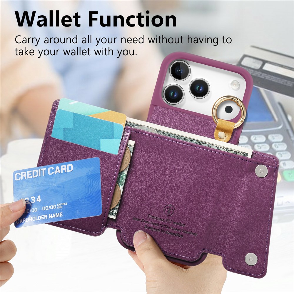 - All in One Wallet Storage Designed with card slots for cash, cards, and coins, this case keeps your essentials neatly organized, eliminating the need for a bulky wallet when going out.