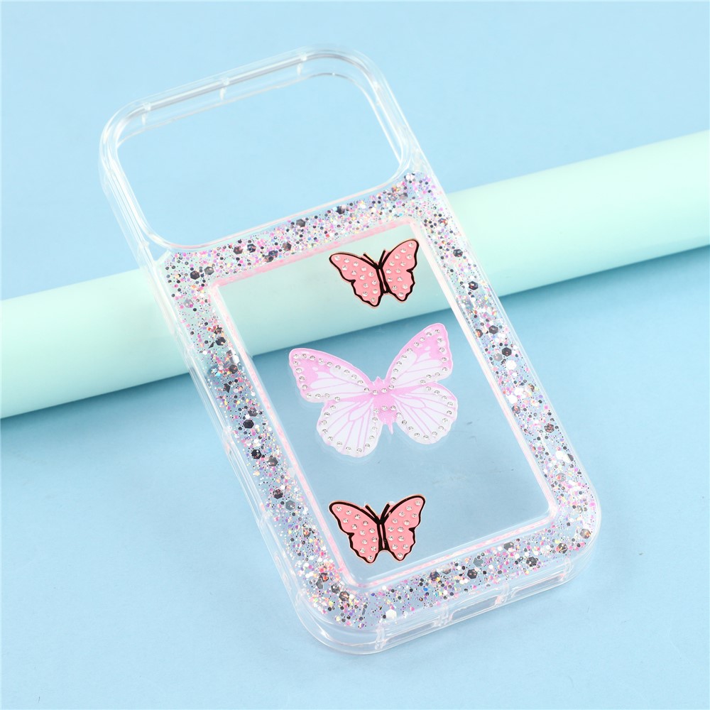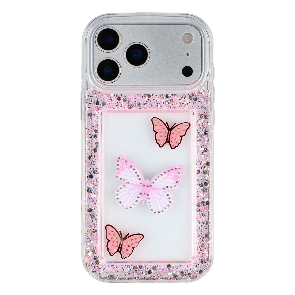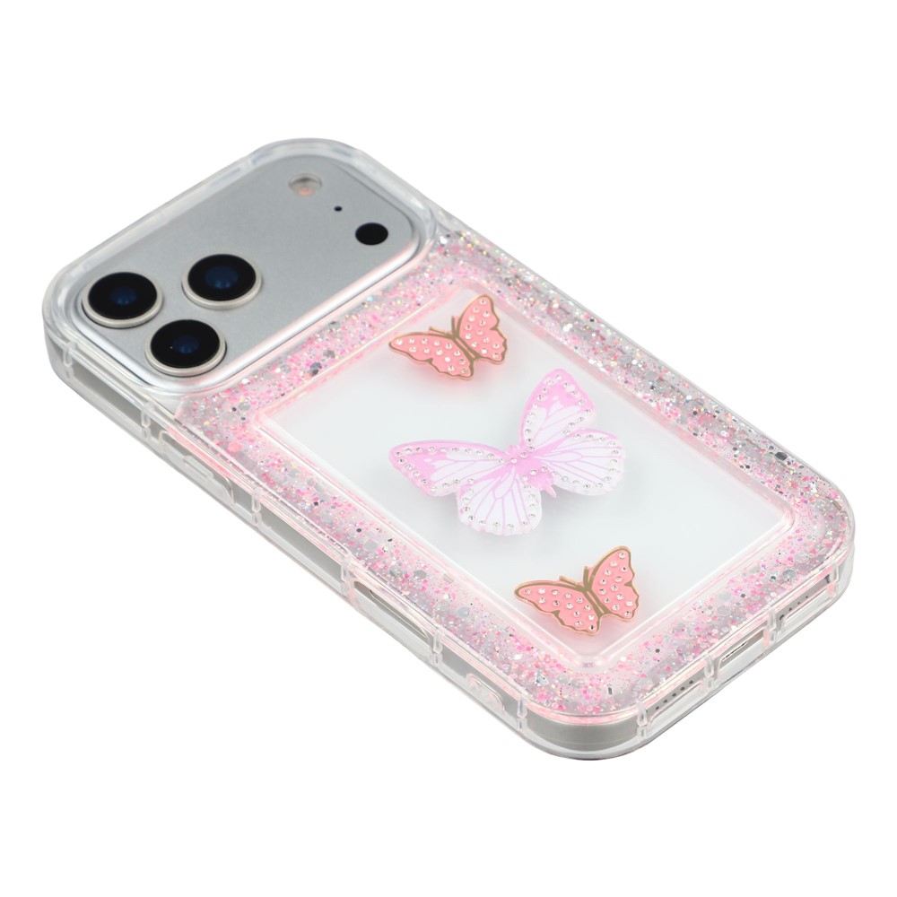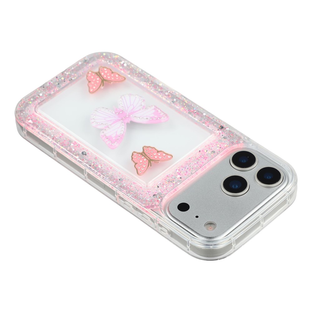 For iPhone 17 Pro Max Case DIY Butterfly Glitter Epoxy Soft TPU Phone Back Cover - Pink