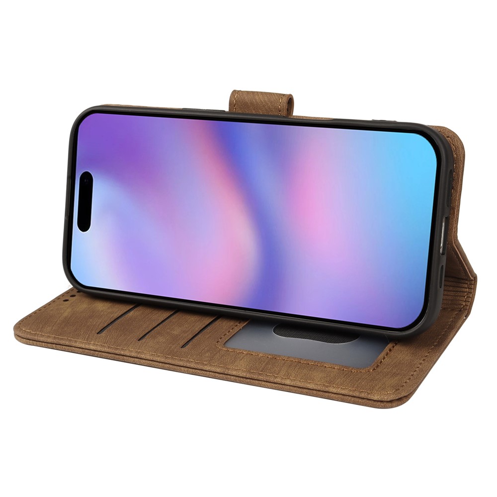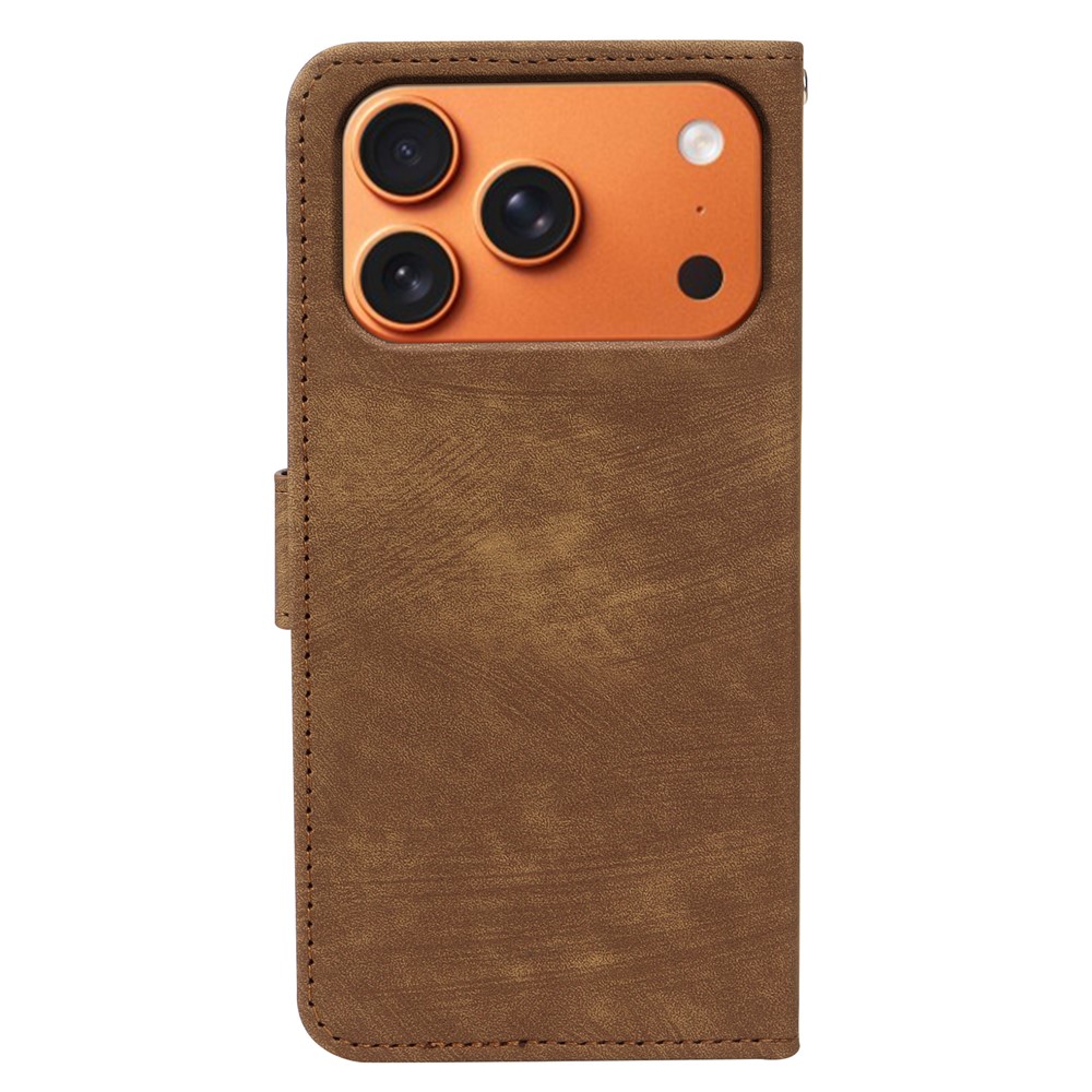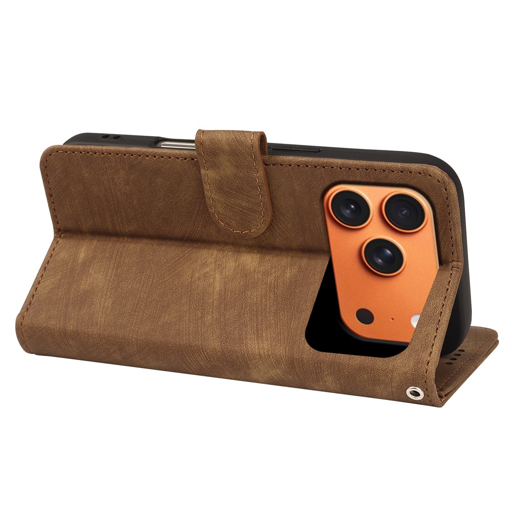 For iPhone 17 Pro Max Case Flip Wallet Striped Texture Leather Phone Cover - Brown