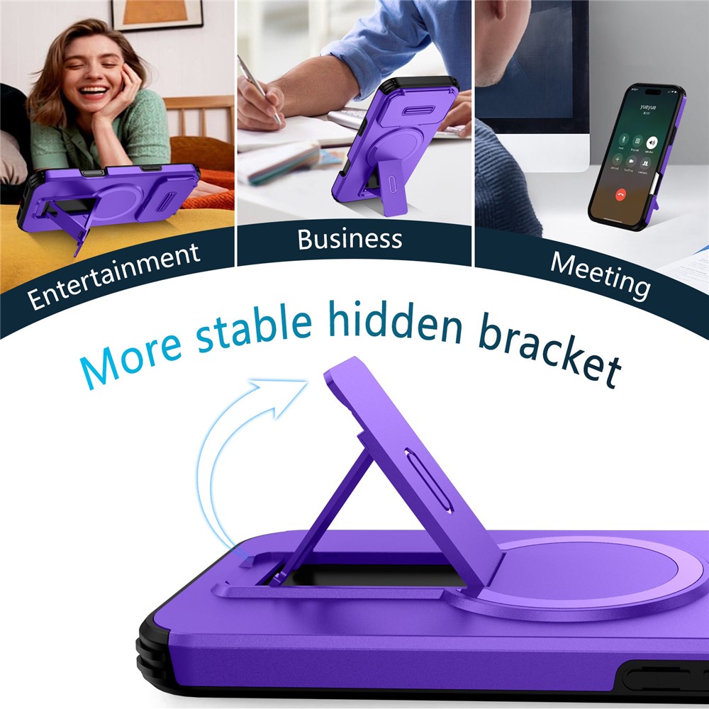 For iPhone 17 Pro Max Case Kickstand Camera Slider PC + TPU Phone Cover Compatible with MagSafe - Purple