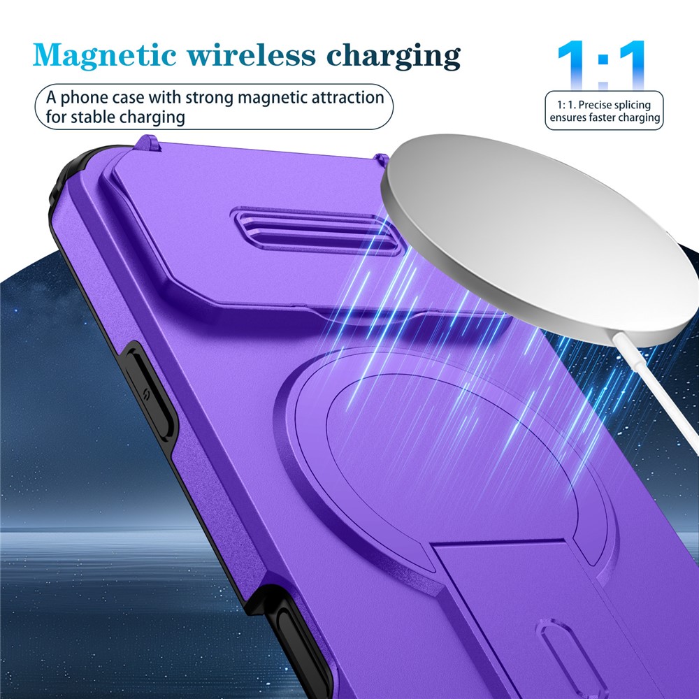 For iPhone 17 Pro Max Case Kickstand Camera Slider PC + TPU Phone Cover Compatible with MagSafe – Purple