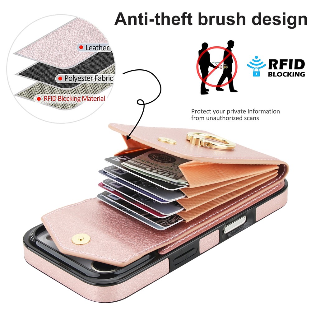 - RFID Blocking Security & Premium Build Made of scratch-resistant PU leather and shock-absorbing TPU, featuring RFID-blocking technology to protect cards from wireless theft