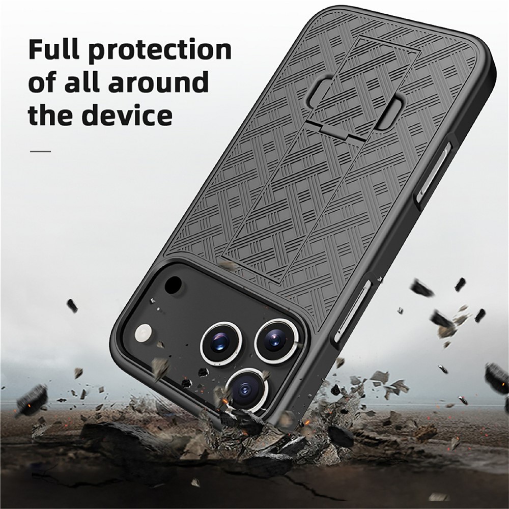 For iPhone 17 Pro Max Case PC + TPU Sliding Screen Cover Kickstand Phone Shell with Clip