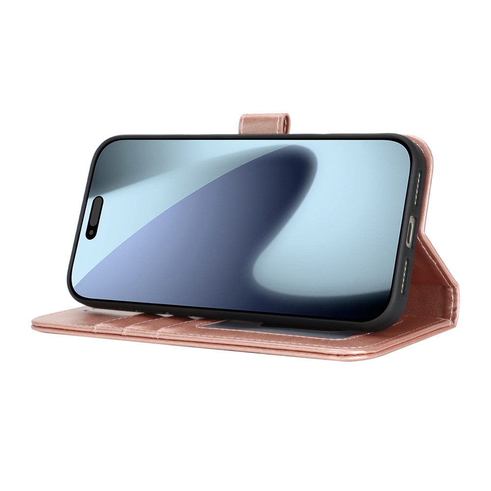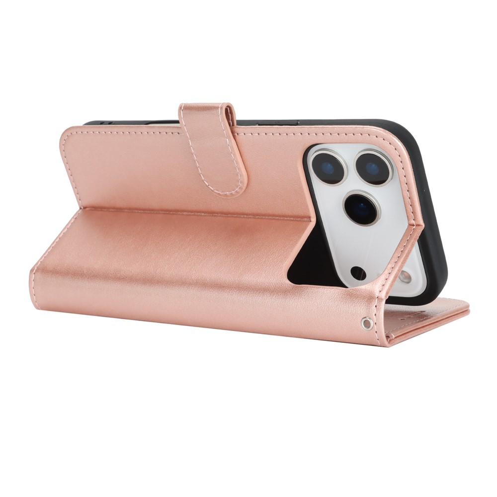 For iPhone 17 Pro Max Case R61 Texture Wallet Leather Flip Phone Cover with Wrist Strap – Rose Gold