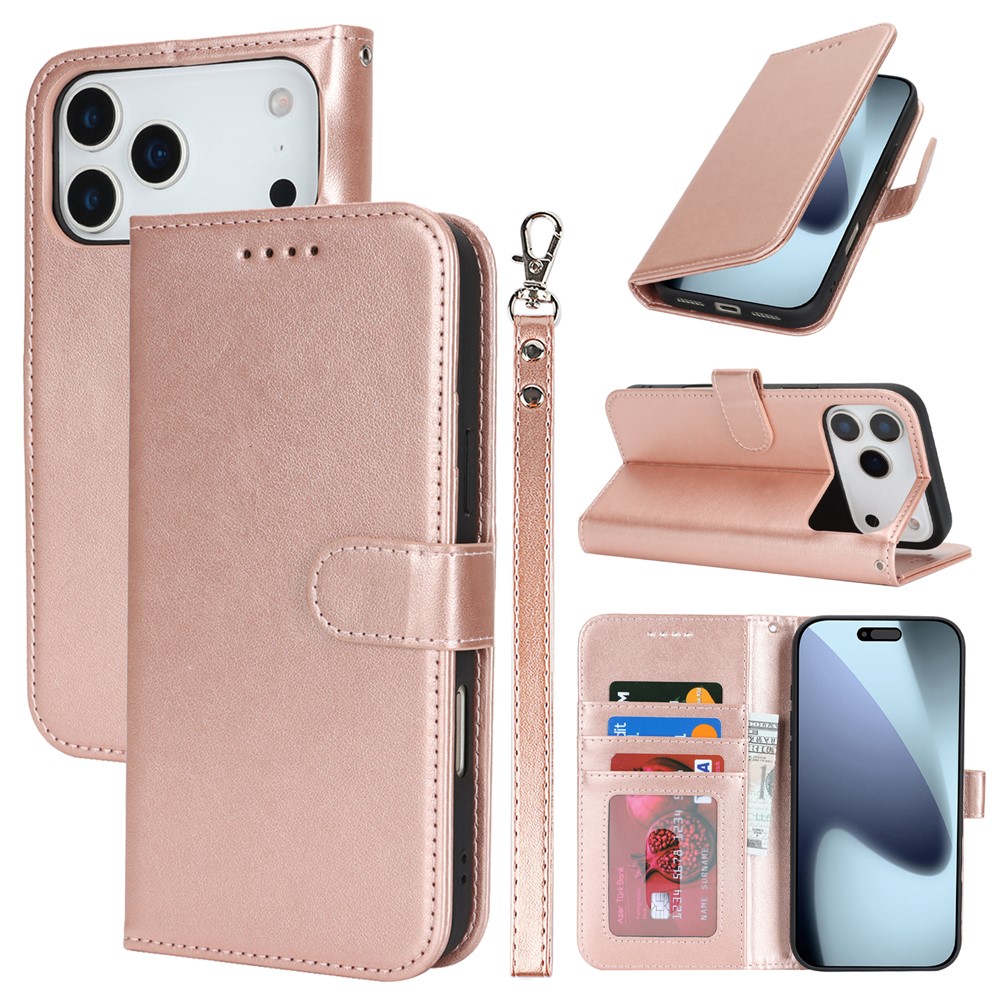 For iPhone 17 Pro Max Case R61 Texture Wallet Leather Flip Phone Cover with Wrist Strap - Rose Gold $21.92