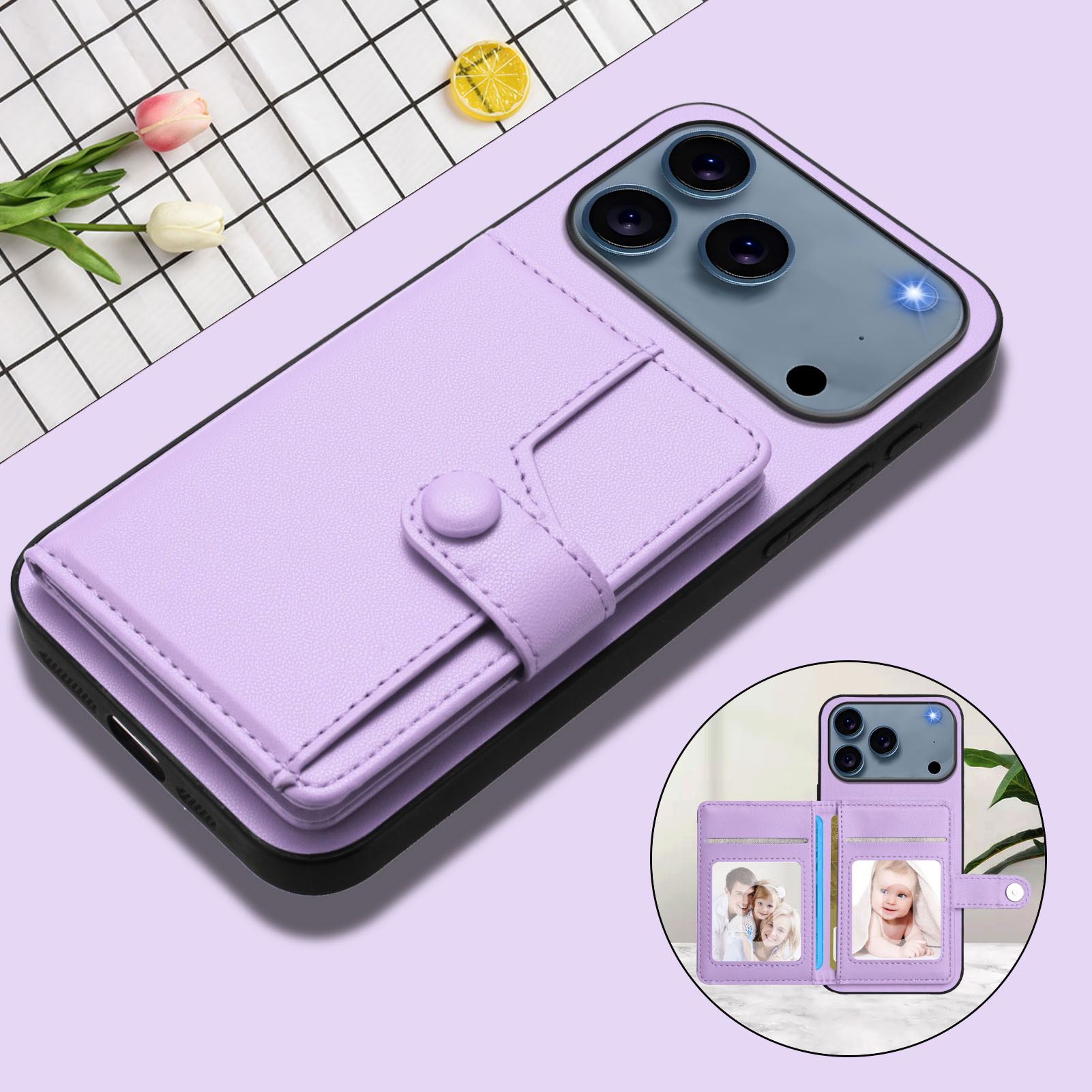 - Multi-Function Card Holder Equipped with 4 dedicated card slots on the back, it provides secure storage for your cards and cash, making it both practical and convenient
