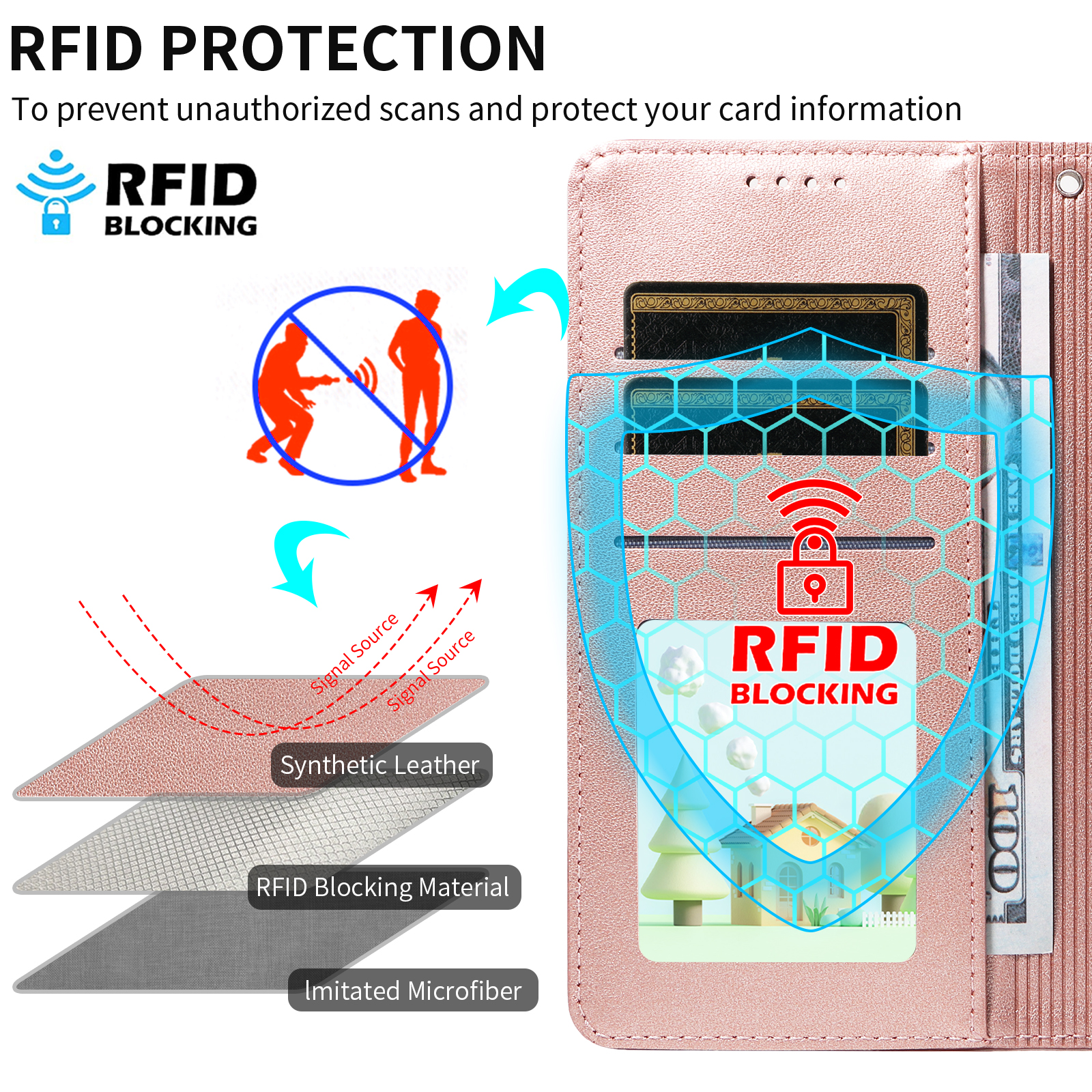 - RFID Blocking Protection Equipped with RFID-blocking technology to help shield your personal information from electronic theft