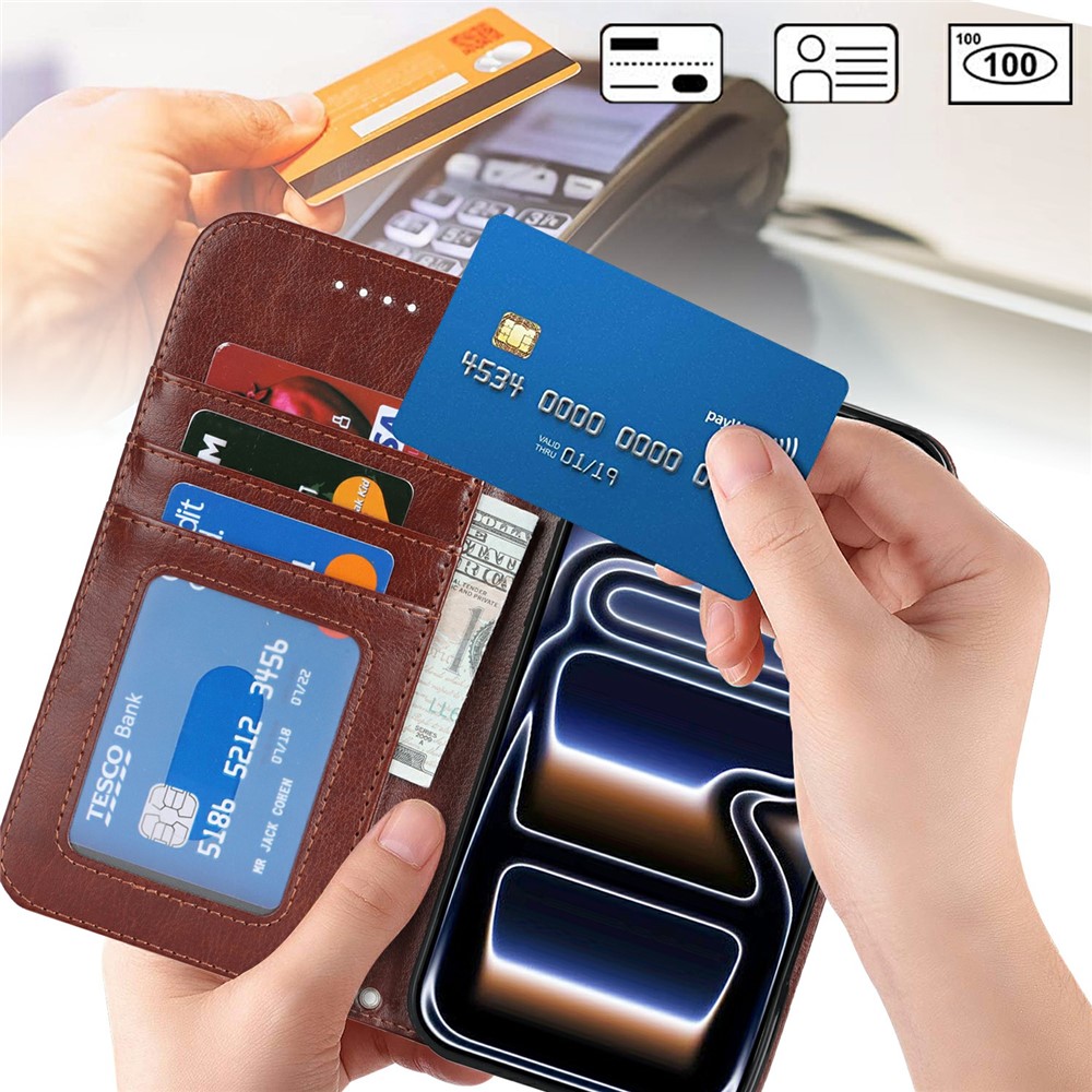 - Multi-Functional Design Features built-in card slots, a cash pocket, and a secure hand strap—perfect for on-the-go convenience