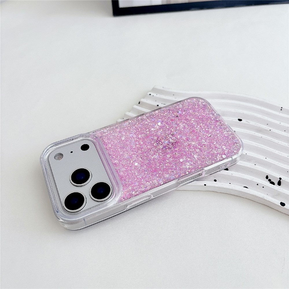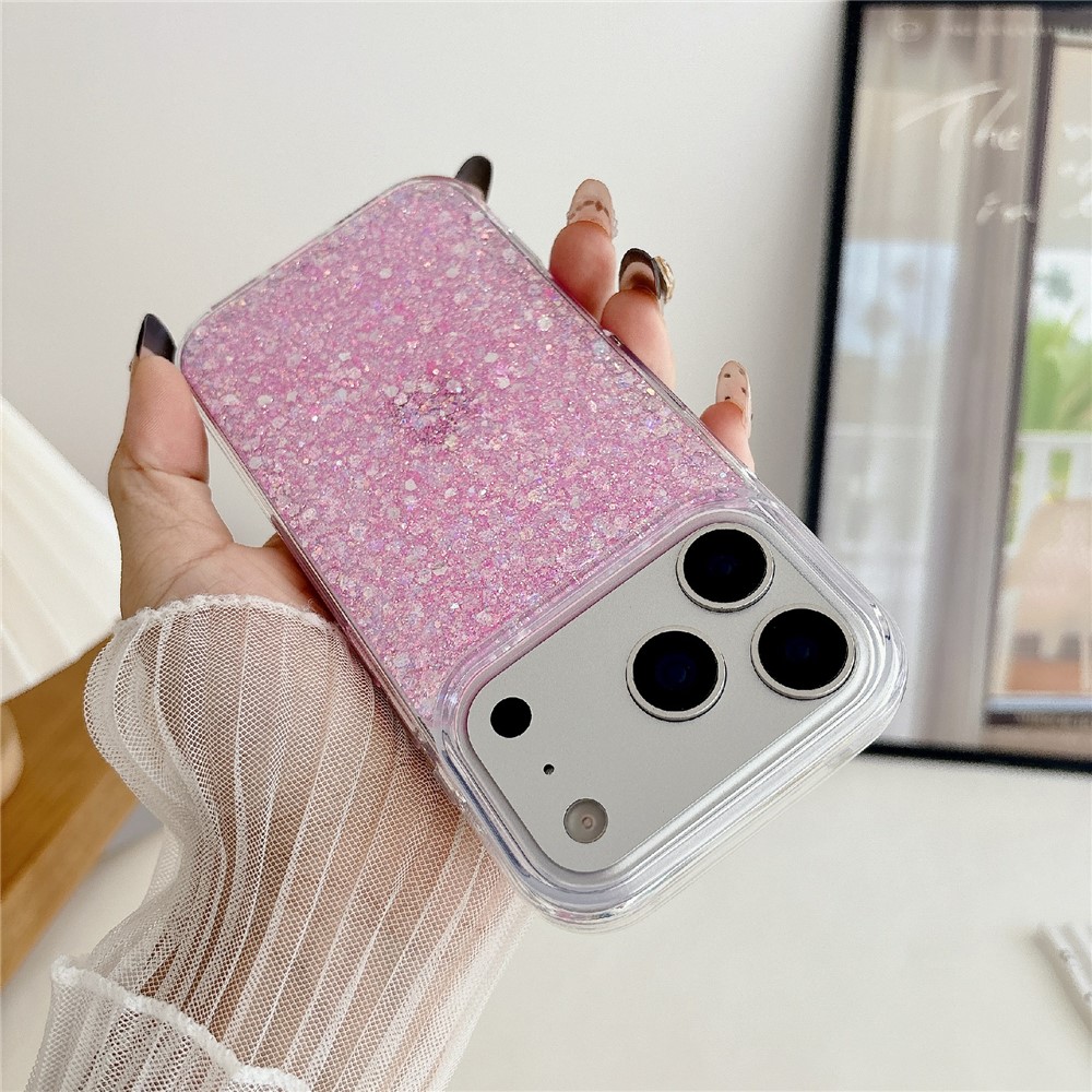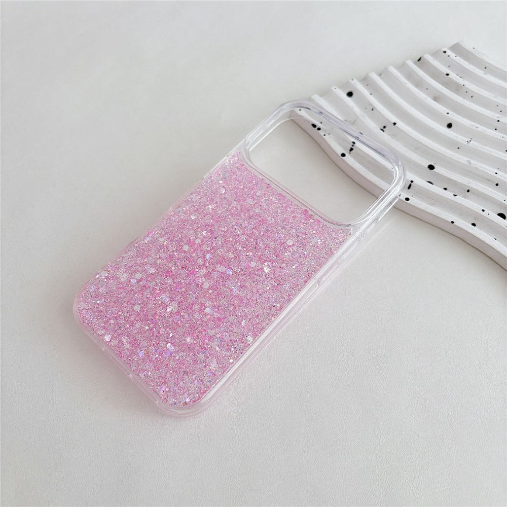 For iPhone 17 Pro Max Case TPU Drop Protection Epoxy Glittery Sequins Phone Cover - Pink