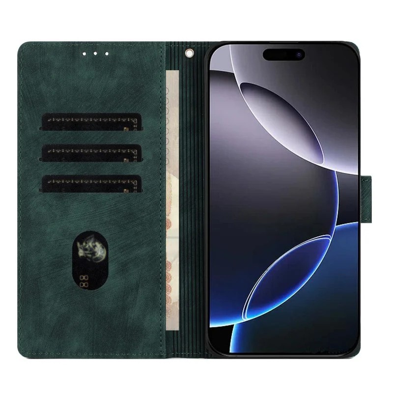 For iPhone 17 Pro Max Case with 2Pcs Tempered Glass WANLONFENG MTL Series Mandala Leather Phone Cover - Midnight Green $18.36