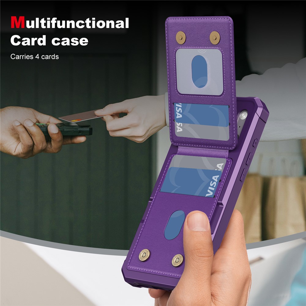 - Multifunctional Card Case Magnetic clasp vertical flip card holder design, can hold up to 4 cards securely in the built-in slots, convenient for daily life