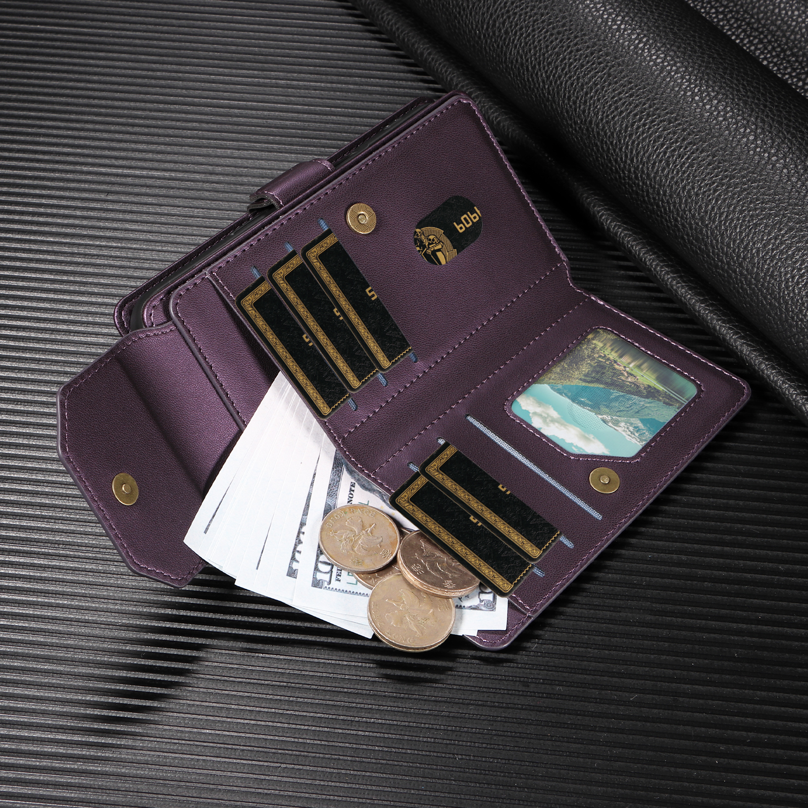 - Multi-Card Slots & Cash Compartments Designed with multiple card slots and two cash pockets, allowing you to conveniently store your essential cards and money on the go.