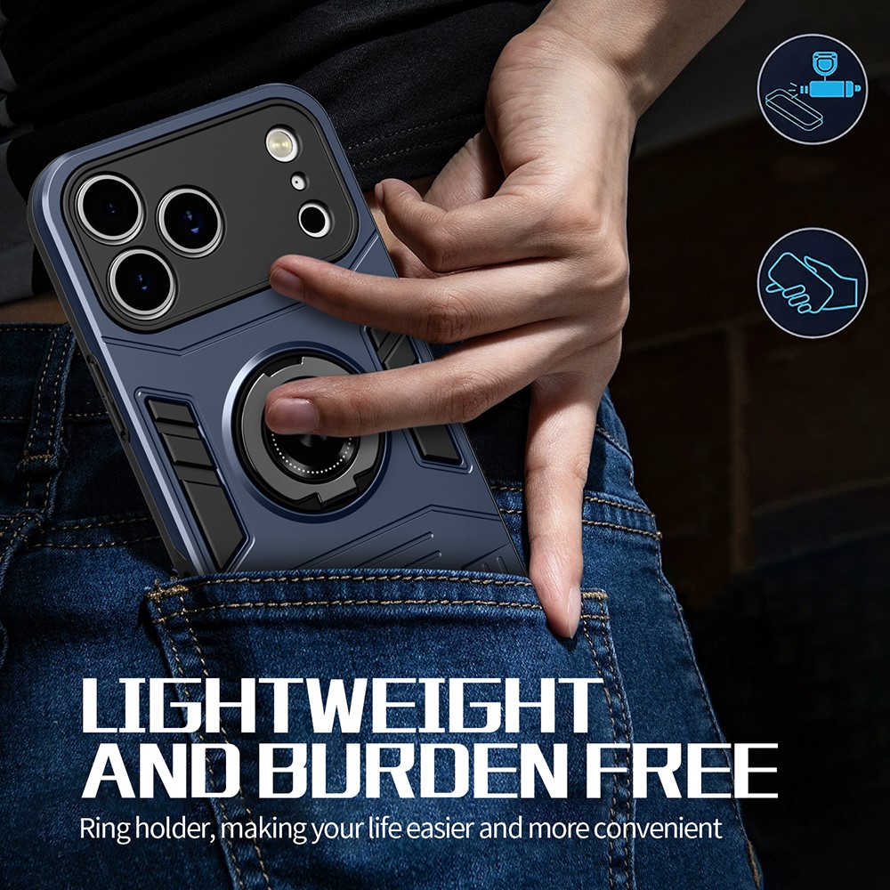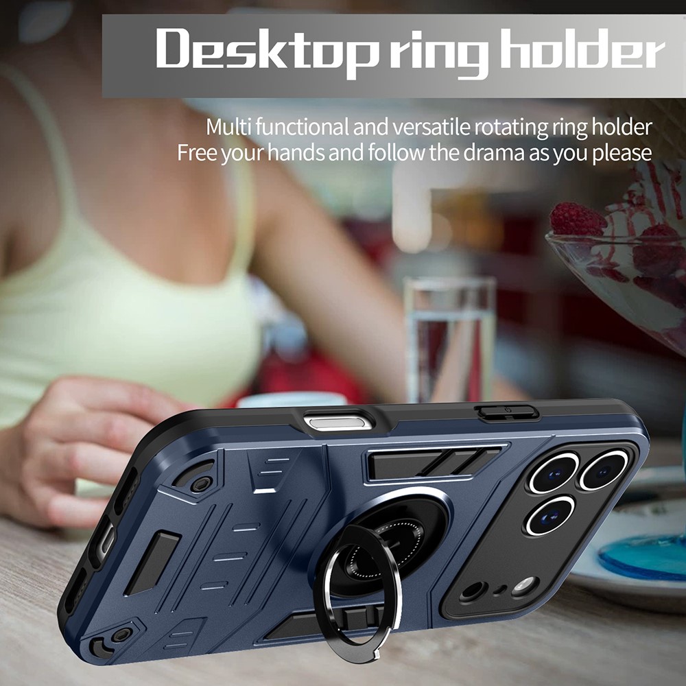 For iPhone 17 Pro Max Case with Ring Holder Kickstand PC + TPU Anti-Fall Phone Cover - Dark Blue $15.40