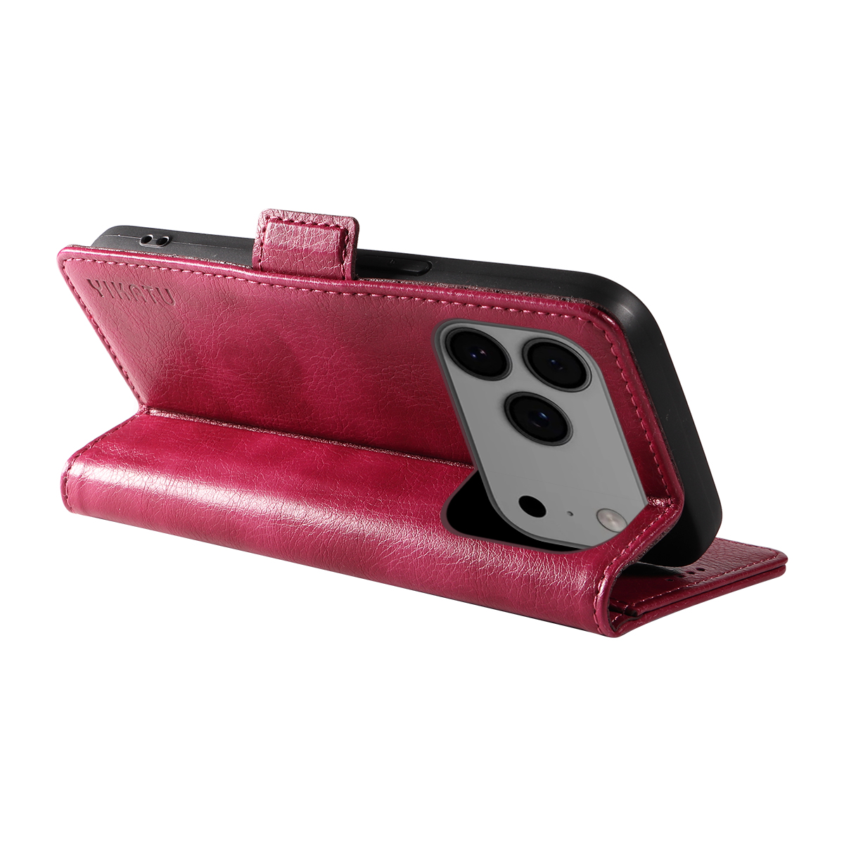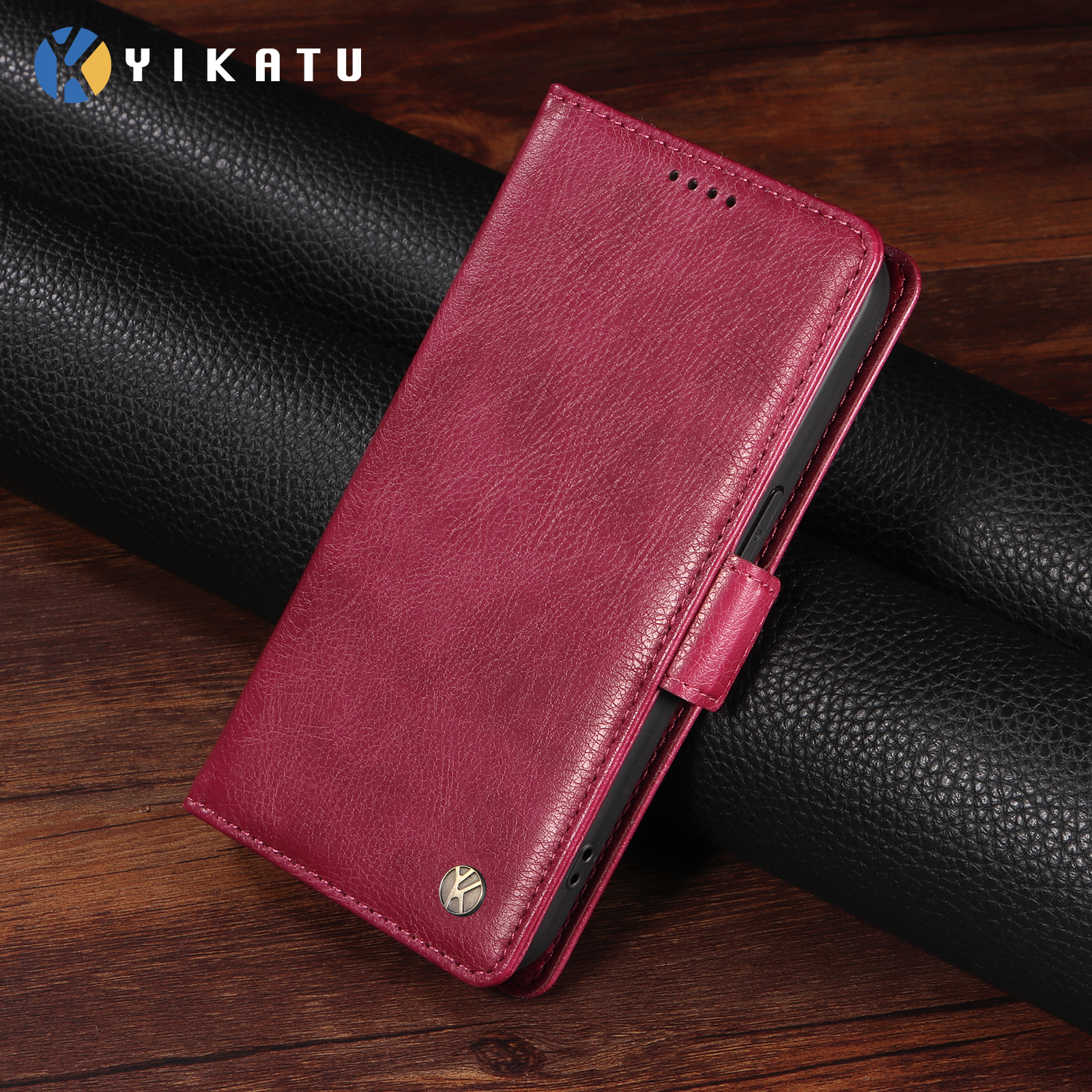 For iPhone 17 Pro Max Case YIKATU YK-007 Litchi Texture PU Leather Wallet Phone Cover - Wine Red $17.79