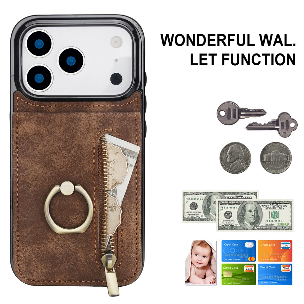 - Built-In Wallet with Zipper Includes card slots and a zippered wallet, allowing you to carry your ID, bank cards, and cash conveniently