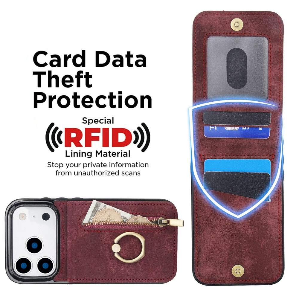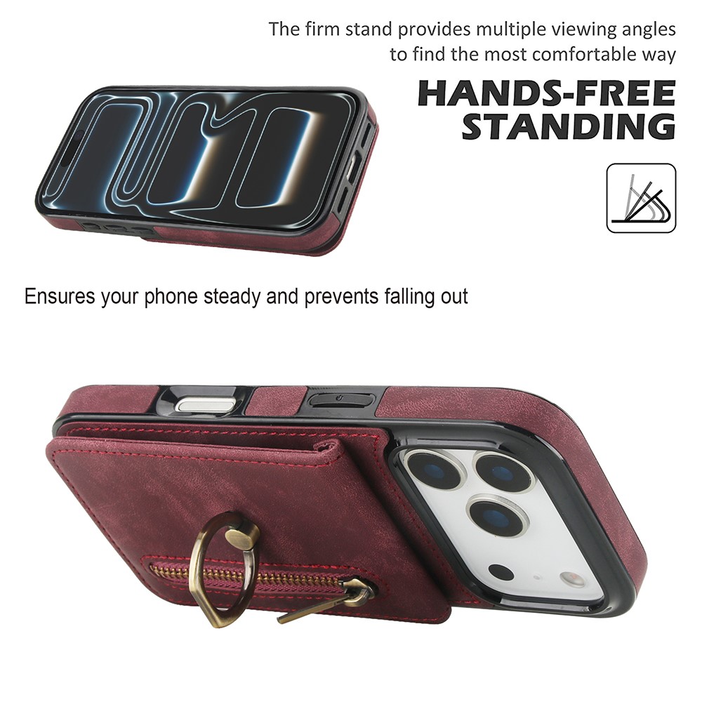 - Built-In Wallet with Zipper Includes card slots and a zippered wallet, allowing you to carry your ID, bank cards, and cash conveniently