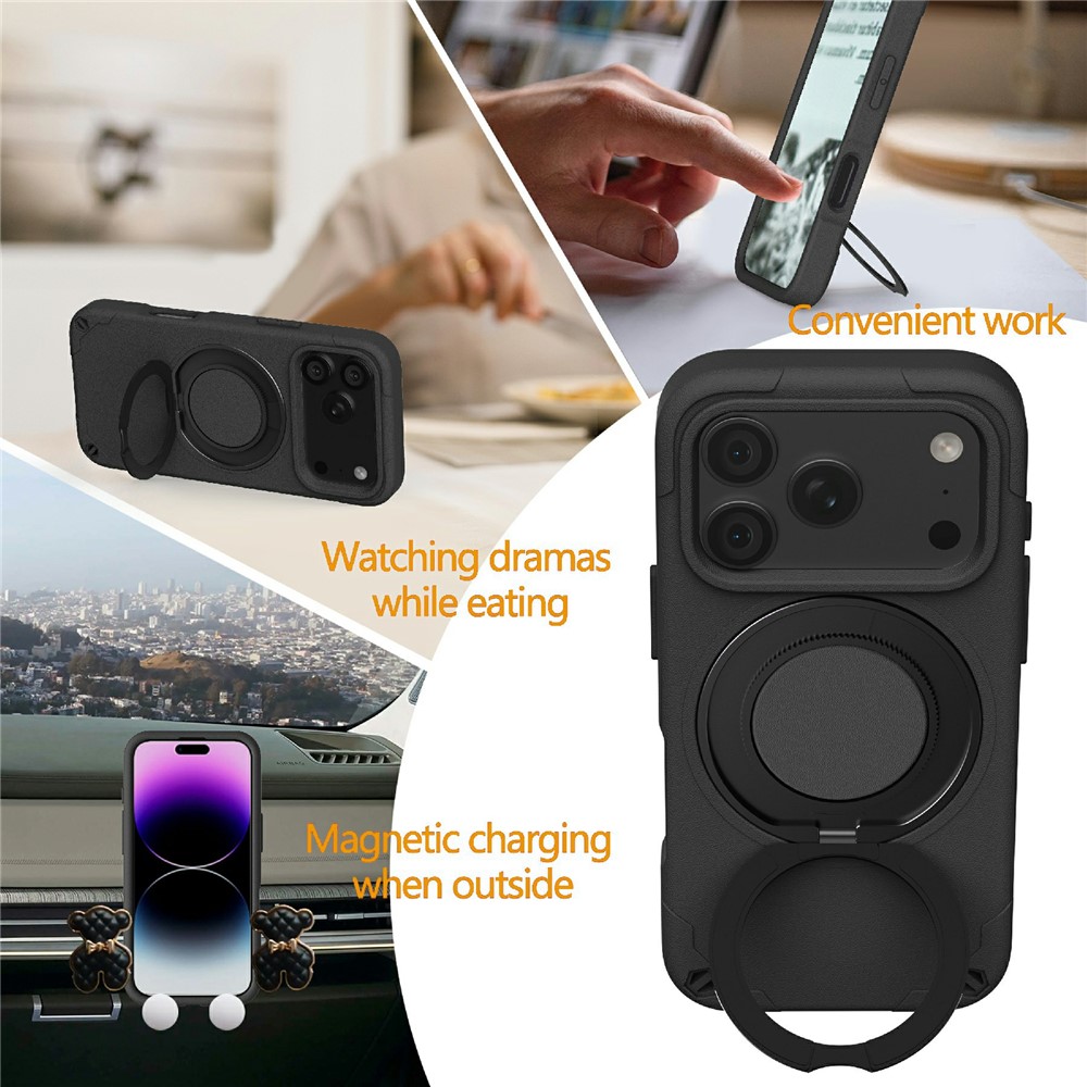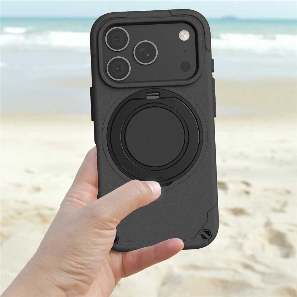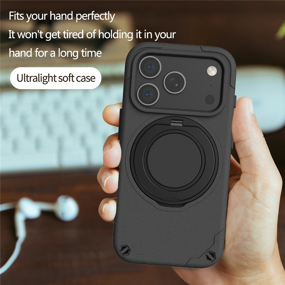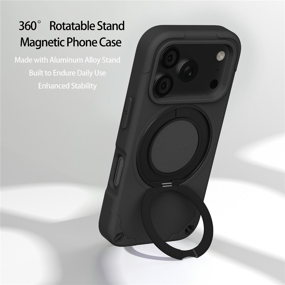 - 360° Rotating Kickstand Equipped with a 360-degree rotating aluminum alloy kickstand, this case allows for hands-free viewing at multiple angles, perfect for watching videos or video calls.