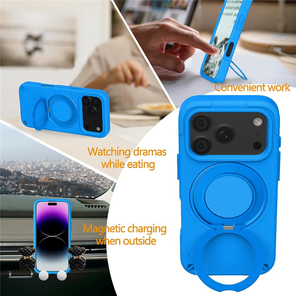 - 360° Rotating Kickstand Equipped with a 360-degree rotating aluminum alloy kickstand, this case allows for hands-free viewing at multiple angles, perfect for watching videos or video calls.