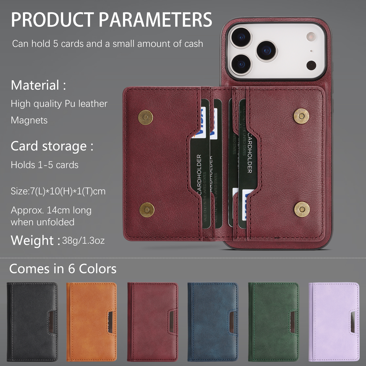 - MagSafe Compatible Supports for MagSafe accessories and wireless charging, featuring a minimalist magnetic leather bi-fold design with card holder functionality.