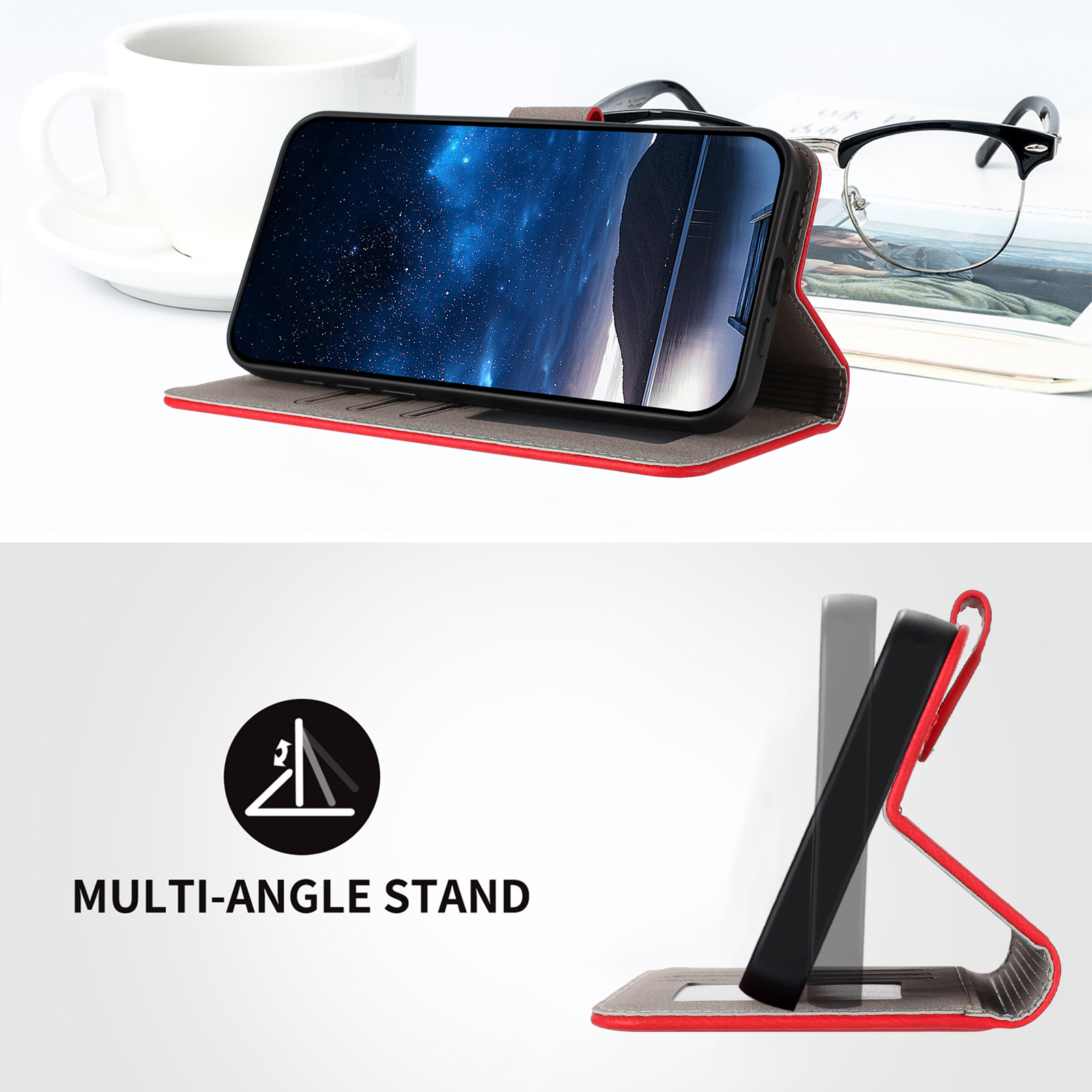 - Adjustable Stand The phone case folds into a sturdy stand, offering a comfortable hands-free viewing angle for watching videos, or making video calls