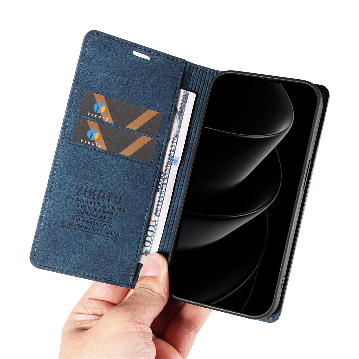 For iPhone 17 Pro Max Leather Cover YIKATU YK-004 Skin-Touch Wallet Phone Cases - Blue $17.60