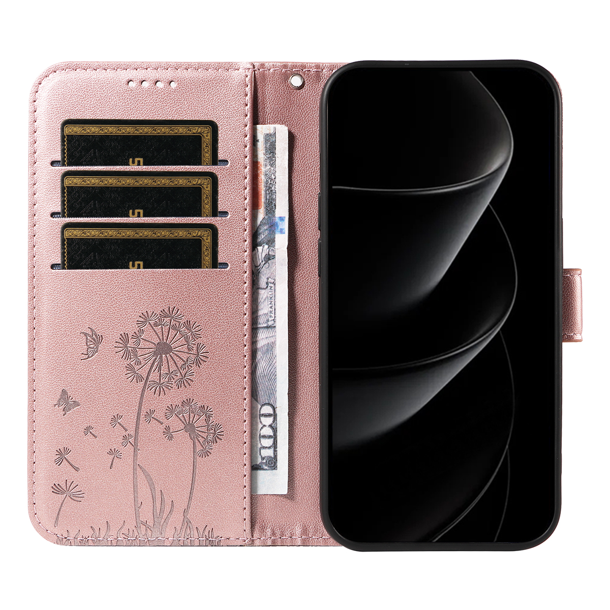 - Elegant Pattern Imprinted Features a stunning Dandelion pattern imprinted design on the surface of the leather cover and card slot area, adding a touch of luxury and uniqueness