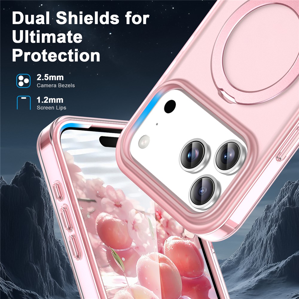 • For iPhone 17 Pro Max Magnetic Case Kickstand Frosted TPU + PC Phone Cover with PET Screen Protector - Rose