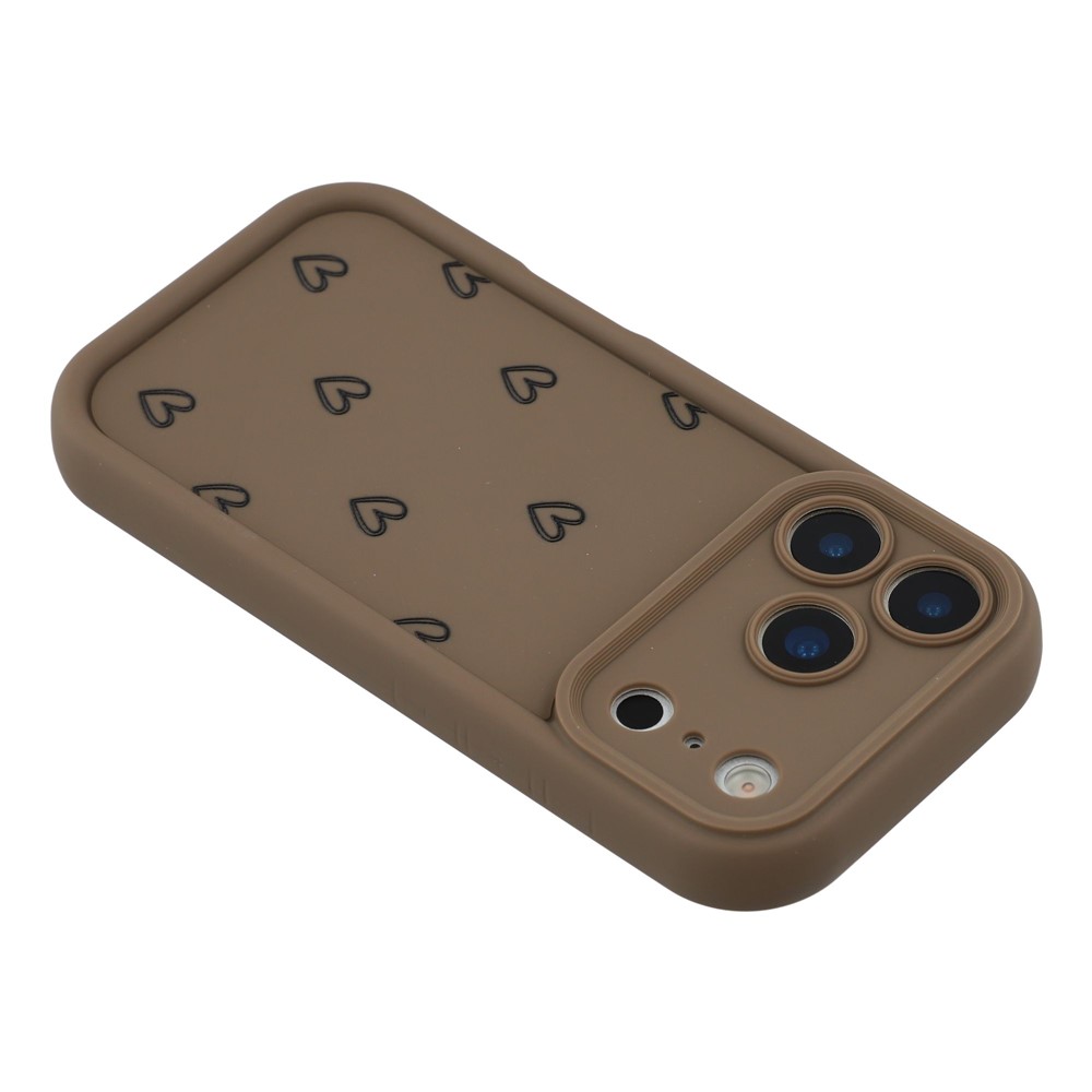 For iPhone 17 Pro Max Phone Case Heart Pattern TPU Shockproof Protective Cover – Brown