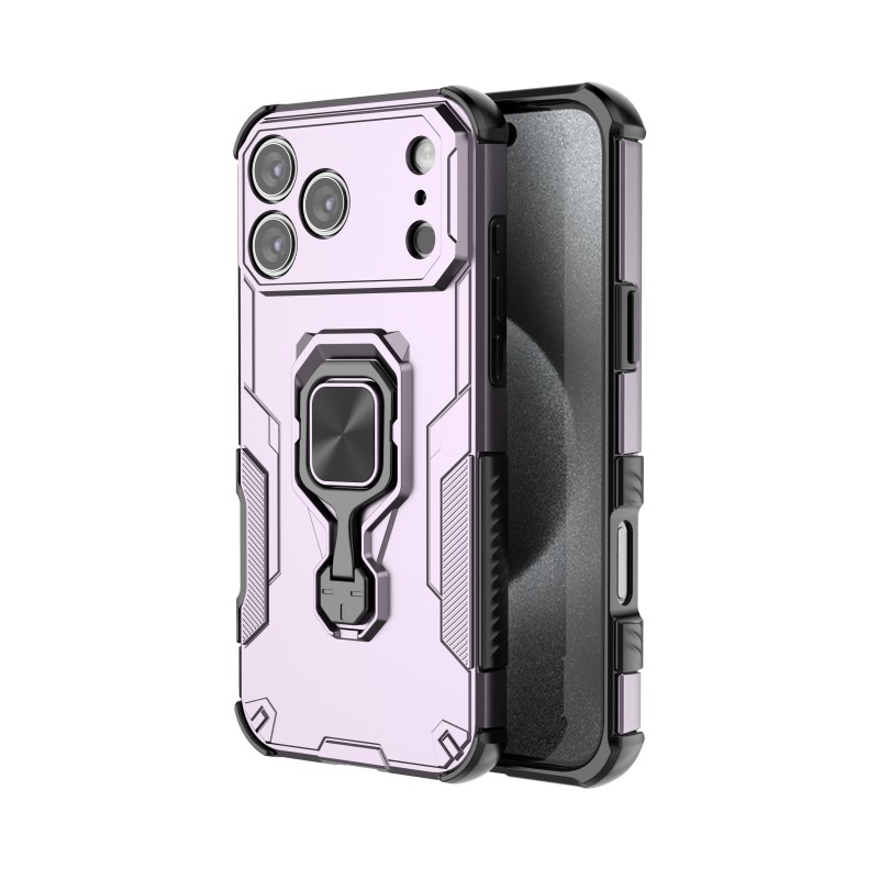For iPhone 17 Pro Max Phone Case WANLONFENG PC TPU Back Cover Kickstand with Tempered Glass – Purple