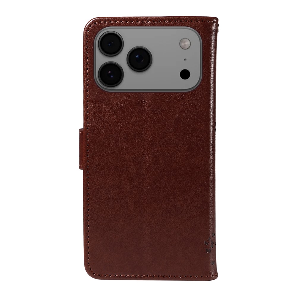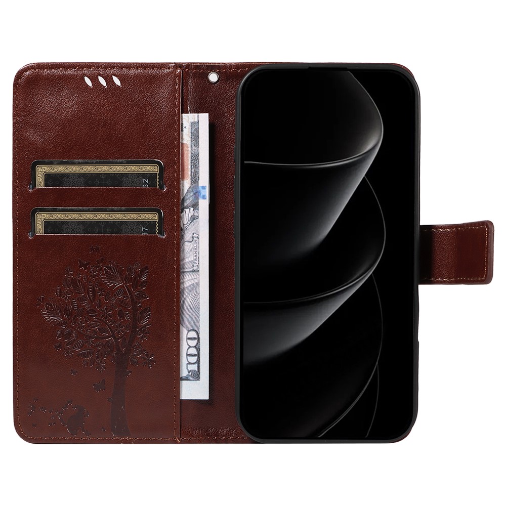 For iPhone 17 Pro Max Phone Case with Stand Cat Tree Pattern Leather Wallet Mobile Cover - Coffee